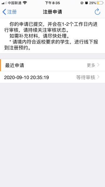填写完信息后,当出现该页面即为提交成功,待老师审核通过即可。