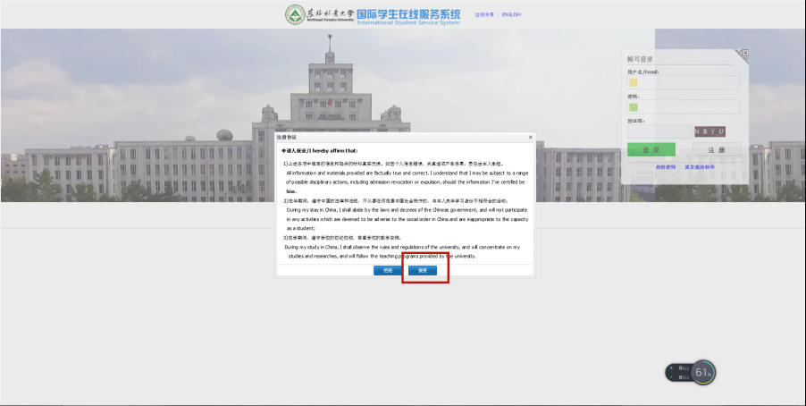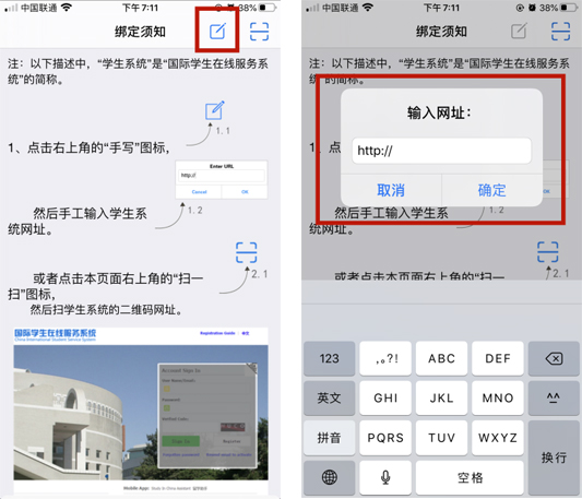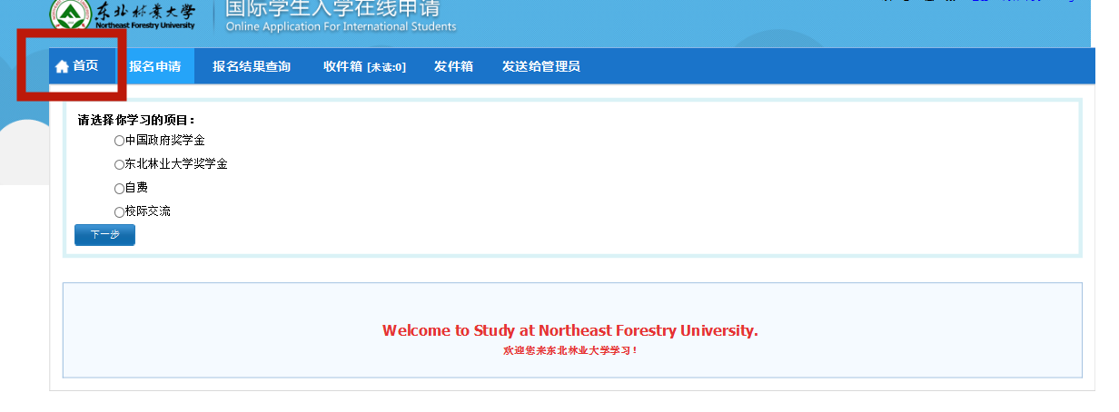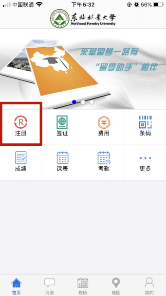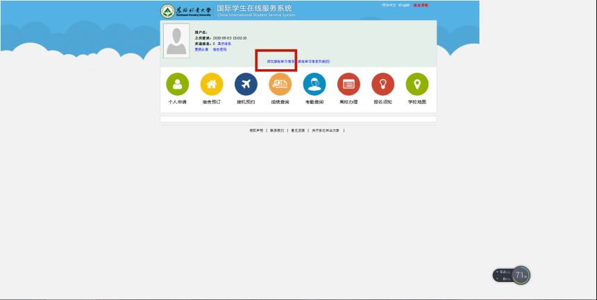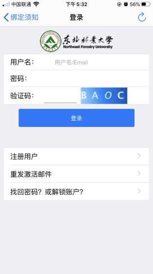 打开APP后在输入网址处输入http://nefu.17gz.org/(该网址为前面的国际学生在线服务系统的网址),即可进入系统。