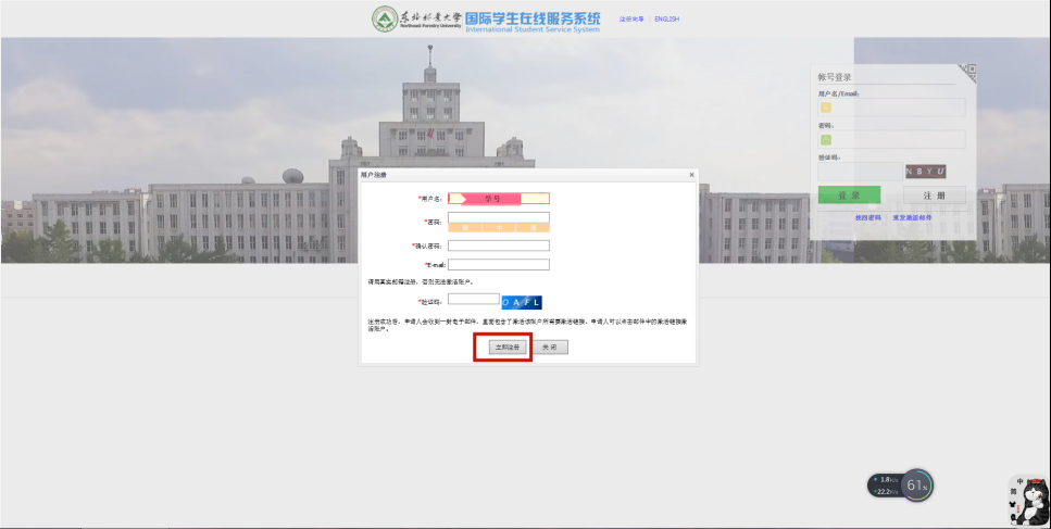 注册时需注意,用户名需为学号,所有内容填写完成后点击“立即注册”。