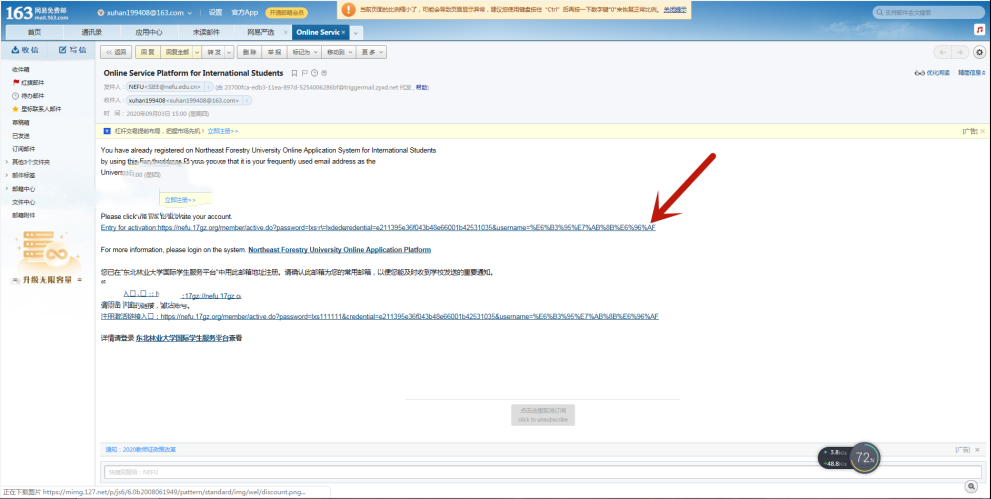 跳转至该页面后点击“立即去邮箱认证用户”。