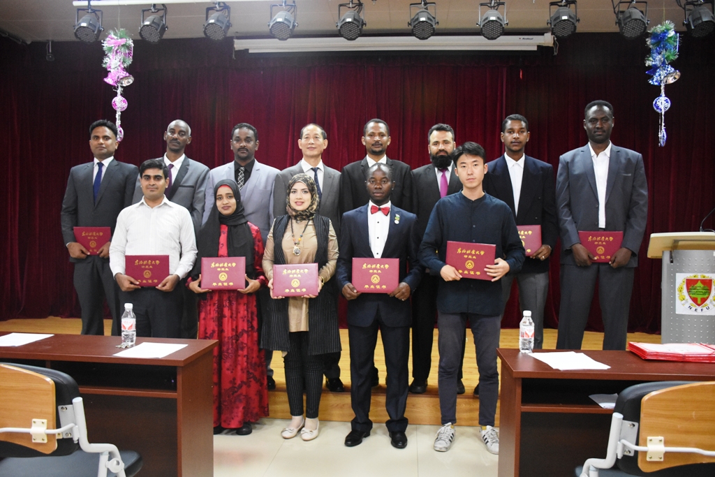 最后,留管科尹智洋老师宣读了“校友联络员”、“优秀留学毕业生”、“优秀留学生干部”及“优秀留学生”名单,乔凤合院长为他们颁发了聘书及荣誉证书,并希望他们与母校保持联系,搭建起中外文化交流的桥梁,为东北林业大学校友工作的发展作出积极贡献。