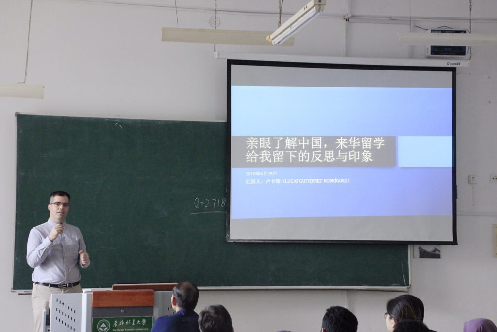 2016级生态学专业进修生卢卡斯主要为大家介绍了自己早期的研究成果、参观侵华日军第七三一部队罪证陈列馆的感受以及他眼里中国发生的巨大变化和取得的伟大成就。他告诫留学生们要珍爱和平,珍惜自己宝贵的学习机会,不断奋斗,实现人生理想。