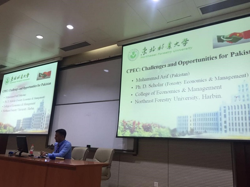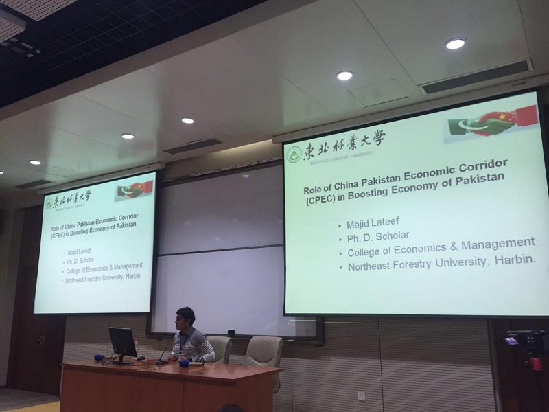 25日上午,论坛活动在哈工大科学园的国际会议厅举办。启动仪式开始后,首先由哈工大的米加宁教授介绍了一带一路的由来、历史及意义,通过他的详细剖析与讲解,留学生们又更进一步的加深了对一带一路的了解。紧接着留学生学术与文化交流环节,先后由哈工大来自蒙古和巴基斯坦的两名留学生和我校来自巴基斯坦的留学生马吉特和阿立夫阐述了“中蒙经济走廊”、“巴基斯坦经济走廊”及一带一路政策给他们带来了影响。四名留学生生动的讲解赢得了参会者们的阵阵掌声。论坛活动结束后,下午首先我们参观了哈工大大学生创新创业园,对他们的技术研发及研发成果做了详细了解。随后,来到坐落在我校的黑龙江省森林博物馆参观,我校国际交流学院的留学生们用流利的英语耐心的对场馆内陈列物进行解说,大家听的很认真,对林业有了一定程度的认知。参观后,直接开往帽儿山实验林场(帽儿山国家森林公园)。