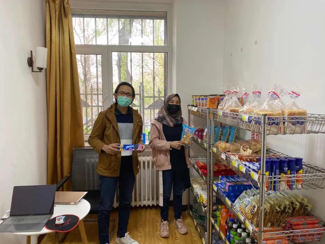 学校在国际学生公寓开设了两个临时微型超市,法立斯除了负责统筹管理两个超市的运营外,还和娜迪亚从周一至周六在自己所住的新公寓楼微型超市做4个小时的“收银员”“理货员”工作。“这两个孩子真不容易,3个月来,几乎天天看到他们,同学来买东西,他们总是热情周到,没有同学时他们就在清点商品、对账,总是在那儿忙碌着。”国际学生新公寓1号楼宿管阿姨王彦华感叹道。