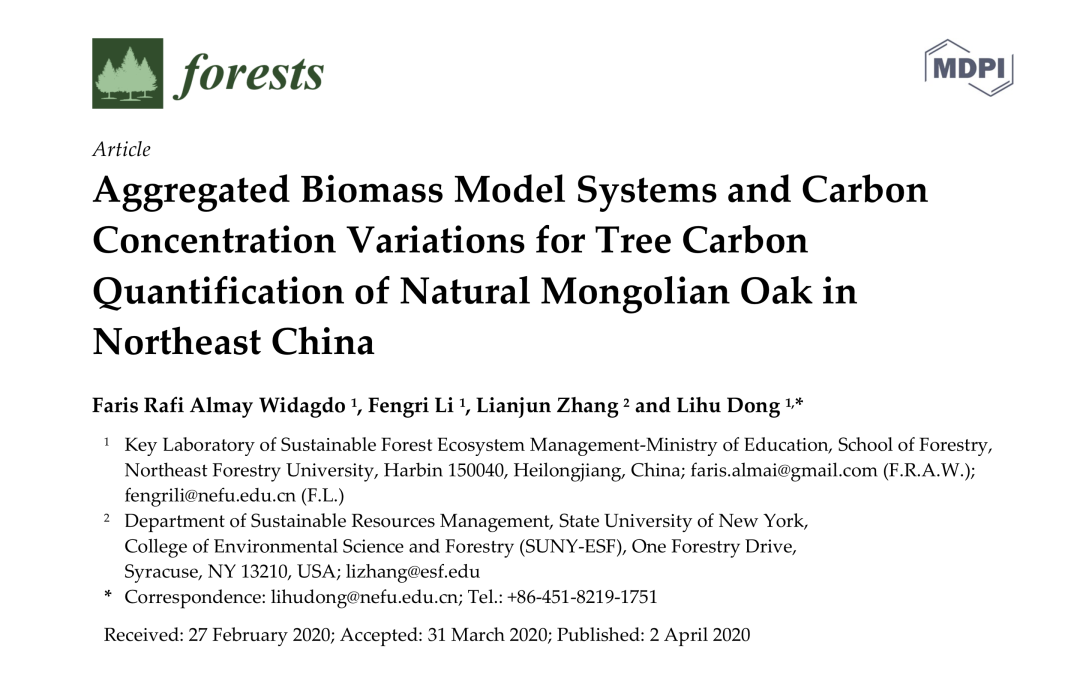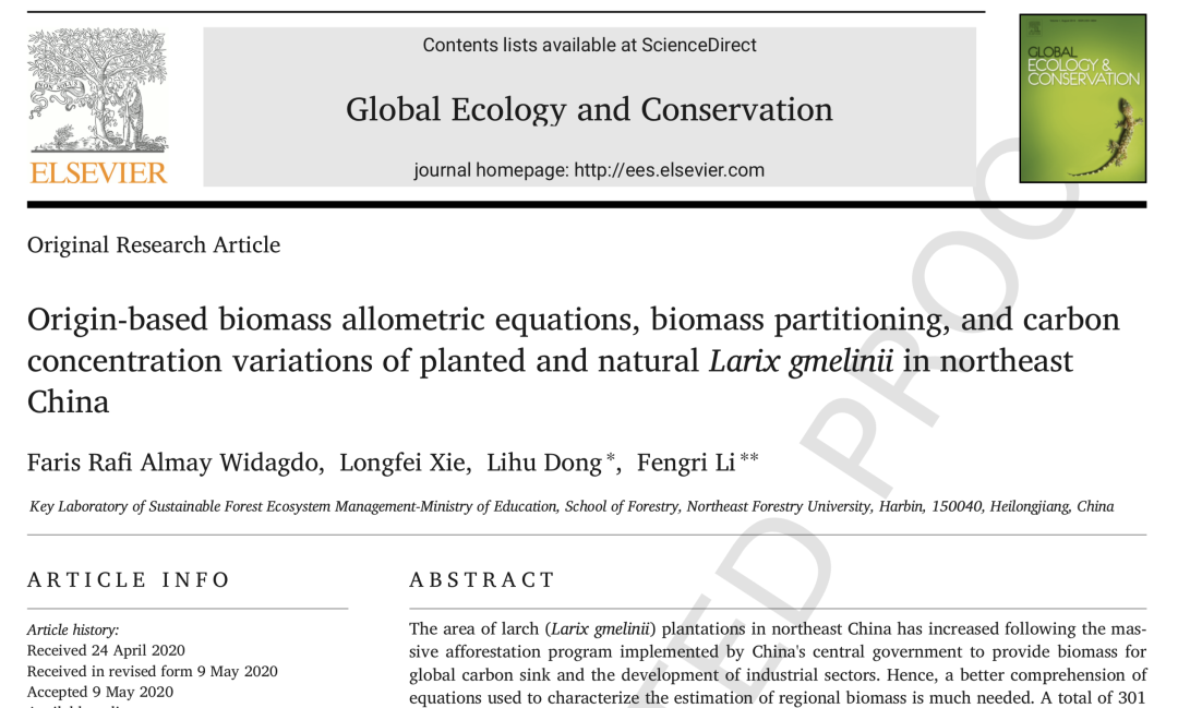 “我的两篇文章分别被瑞士《Forests》和荷兰《Global Ecology and Conservation》2个JCRQ2期刊收录了,谢谢老师的指导。”在收到期刊回复后,法立斯赶紧将这个好消息告诉了自己的研究生导师李凤日教授和董利虎副教授。此外,他还作为第二作者参与了实验室的几位博士学长的SCI英文论文(一篇已被《Forests》期刊接收)。