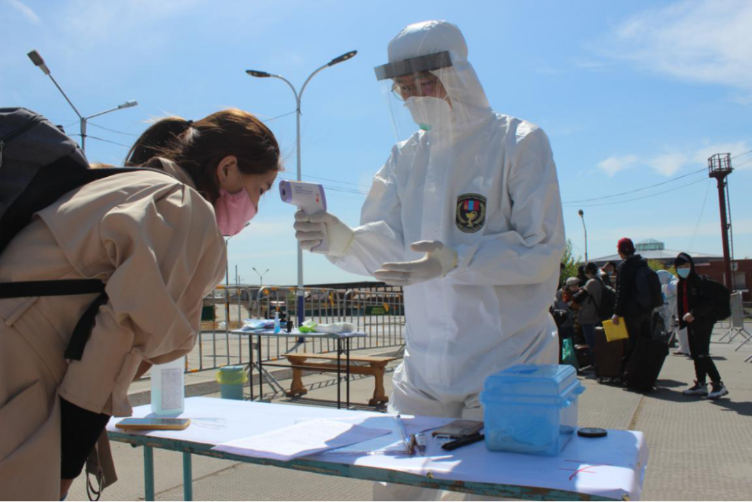 新冠肺炎疫情暴发以来,蒙俄边境大部分口岸已于3月末关闭。作为从俄罗斯回蒙古的唯一通道,楞格省蒙俄边境防疫站入境人员构成复杂,人流量大。截止目前,该防疫站已经排查出40例新冠肺炎疑似病例,其中3人已经确诊。防疫站分为三级工作区域,分别为重度污染区(红区)、中度污染区(黄区)和轻度污染区(绿区),锐思的工作区域为红区,负责排查回国人员是否存在感染风险。