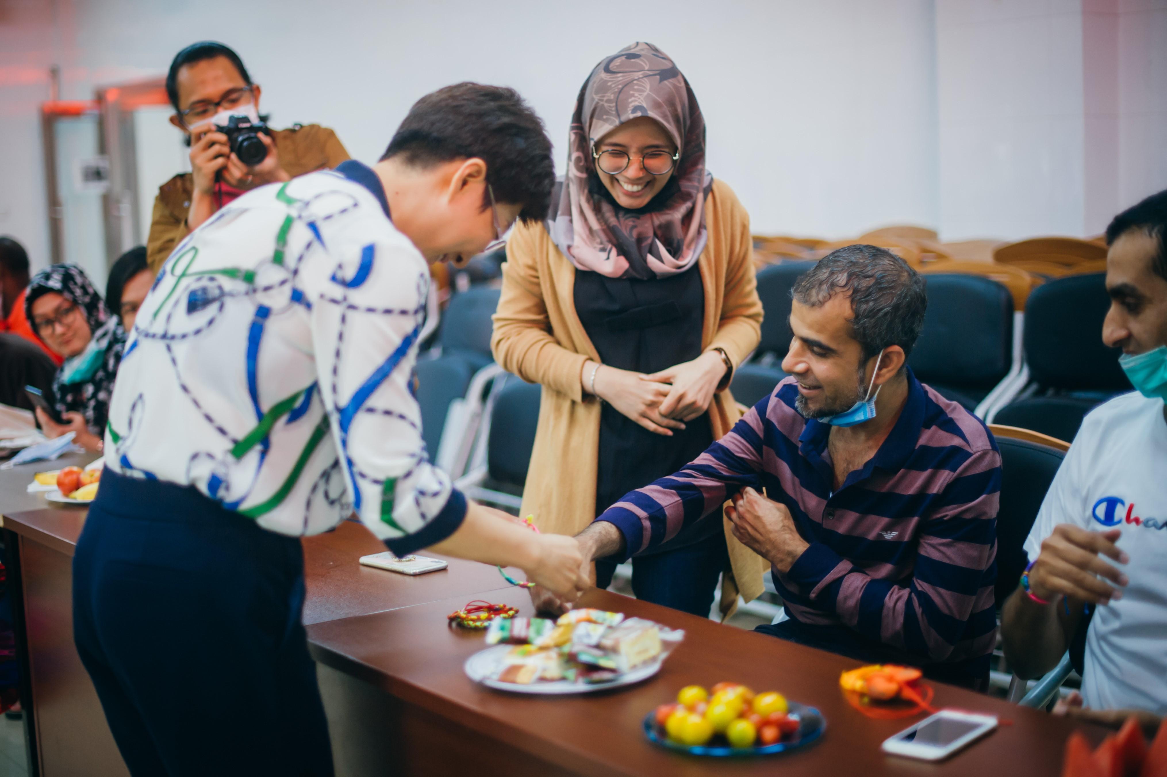 学院新任辅导员徐涵,围绕中国传统节日组织了文化知识竞猜,与线上线下学生欢乐互动。“哪一年中国政府将端午节列入法定假日?”超出讲座内容的问题,令在场的老师都陷入思考,“2008年。”印度尼西亚籍硕士研究生苏利亚很快说出了答案,获得现场热烈掌声。“我是看到学院公众号里发的端午节文章,那里就有说起这个时间。”苏利亚兴奋地说。