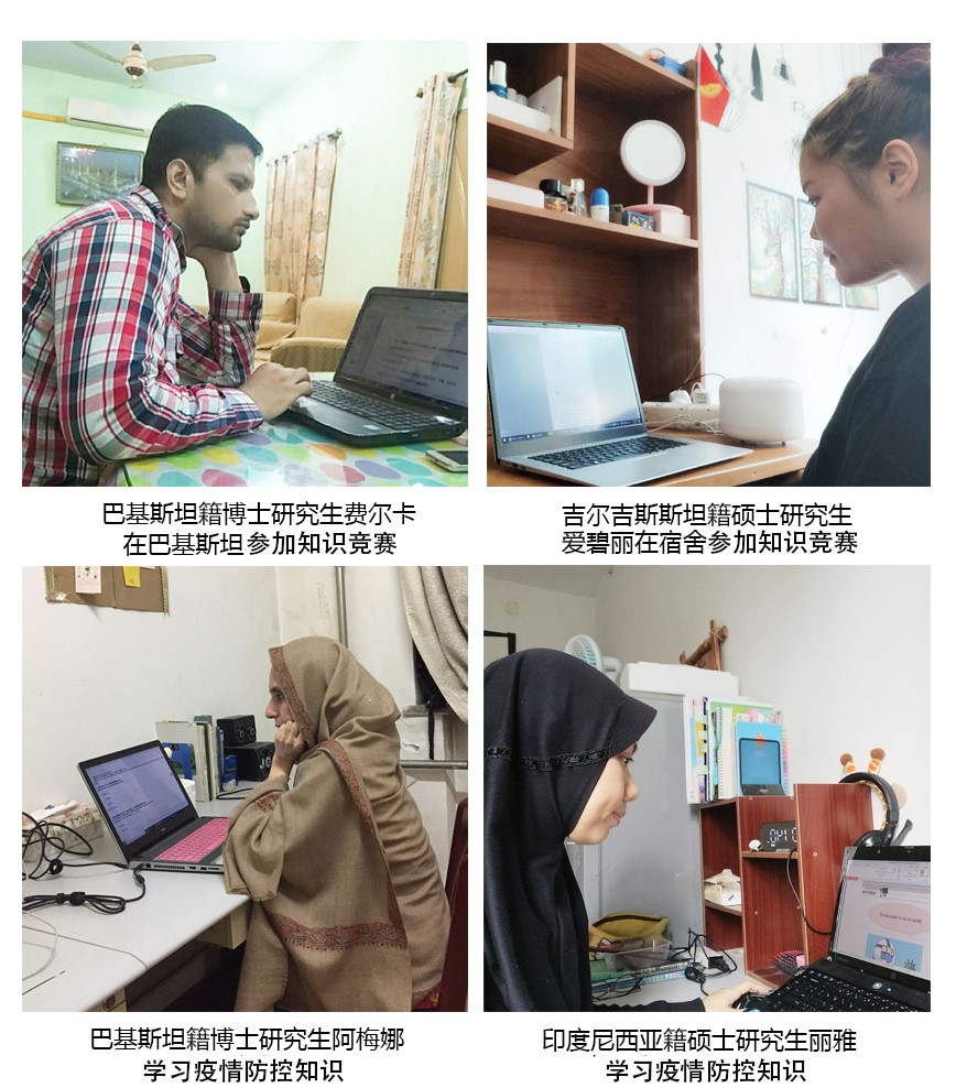国内外留学生们对本次疫情防控教育活动给予了大力支持和配合。4月份竞赛通知发布后,同学们就积极准备,认真阅读学院发布的每期防控知识材料。蒙古籍硕士研究生锐思说:“我做过蒙俄边境疫情防控志愿者,我有丰富的新冠肺炎疫情知识和防控工作经验,我有信心在比赛中取得好成绩!”。巴基斯坦籍博士研究生阿瑟认真总结、梳理了学院发布的新冠病毒防控知识的重点内容,还做成了内容丰富、要点突出的PPT。巴基斯坦籍博士研究生费尔卡特意将学院发布的防控材料都标注了汉语拼音,并把它分享在了留学生微信群里,供大家快速阅读学习防控知识。费尔卡说:“我非常感谢老师们为我们做的一切,为我们安排这样的活动,既能让我们了解更多的科学防控知识,又给了我们提高中文水平的机会”。