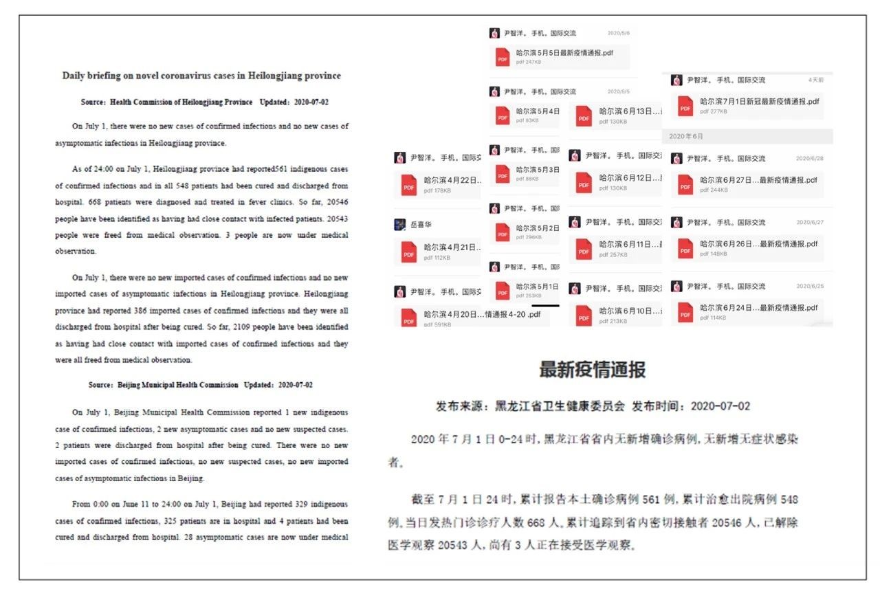 学院给同学们发送的双语版疫情通报