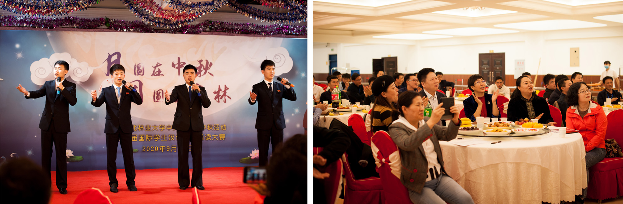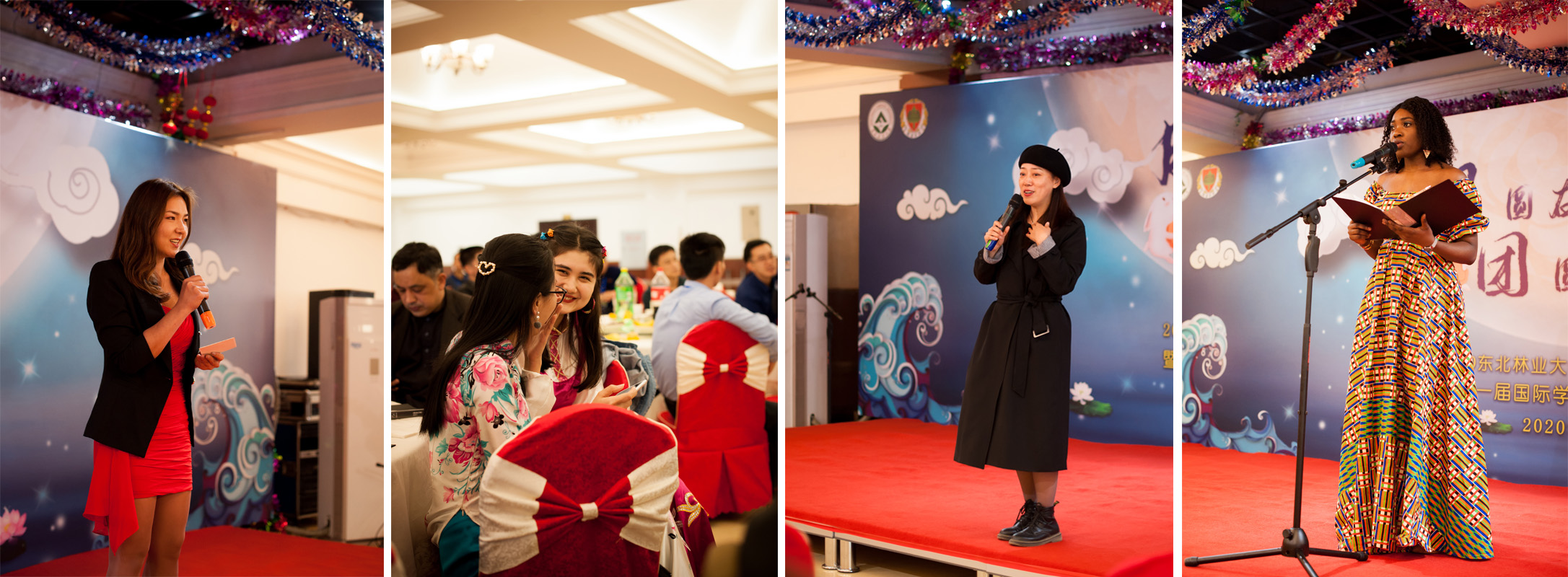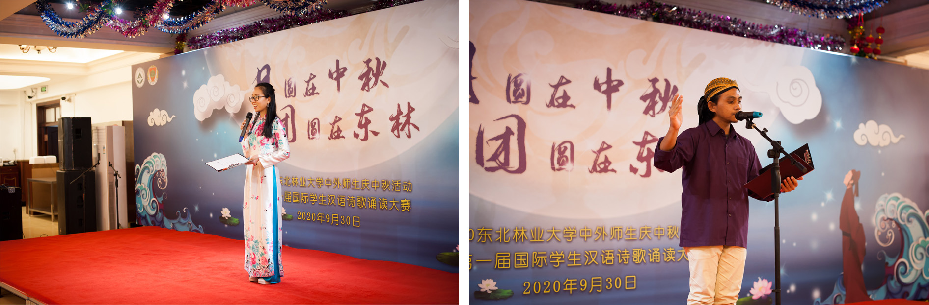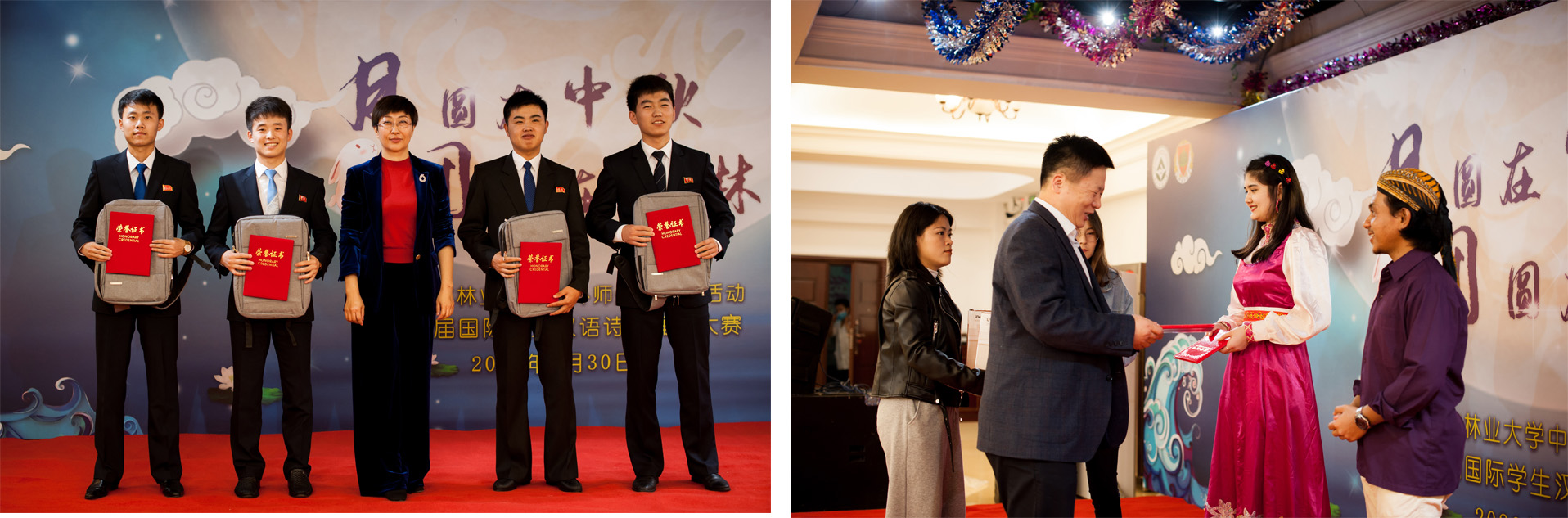 落幕成暖,且道秋安。中秋活动尾声,国际交流学院院长骆颖、副院长岳喜华、刘丹,以及担任评委的汉语教师胡玉娟老师、黄薇老师,为诗歌诵读比赛获奖同学们颁发了奖状和奖品;骆颖院长与同学们分享了共度佳节的喜悦心情,获得了同学们的阵阵掌声。2020中外师生庆中秋——暨第一届国际学生汉语诗歌诵读大赛圆满落幕,国际学生第一次将自己对同窗、对家人、对中国的情感共鸣赋予古诗词中,感受到了中华传统文化的独特魅力,也感受到了在中国、在东北林业大学度过的别样中秋。