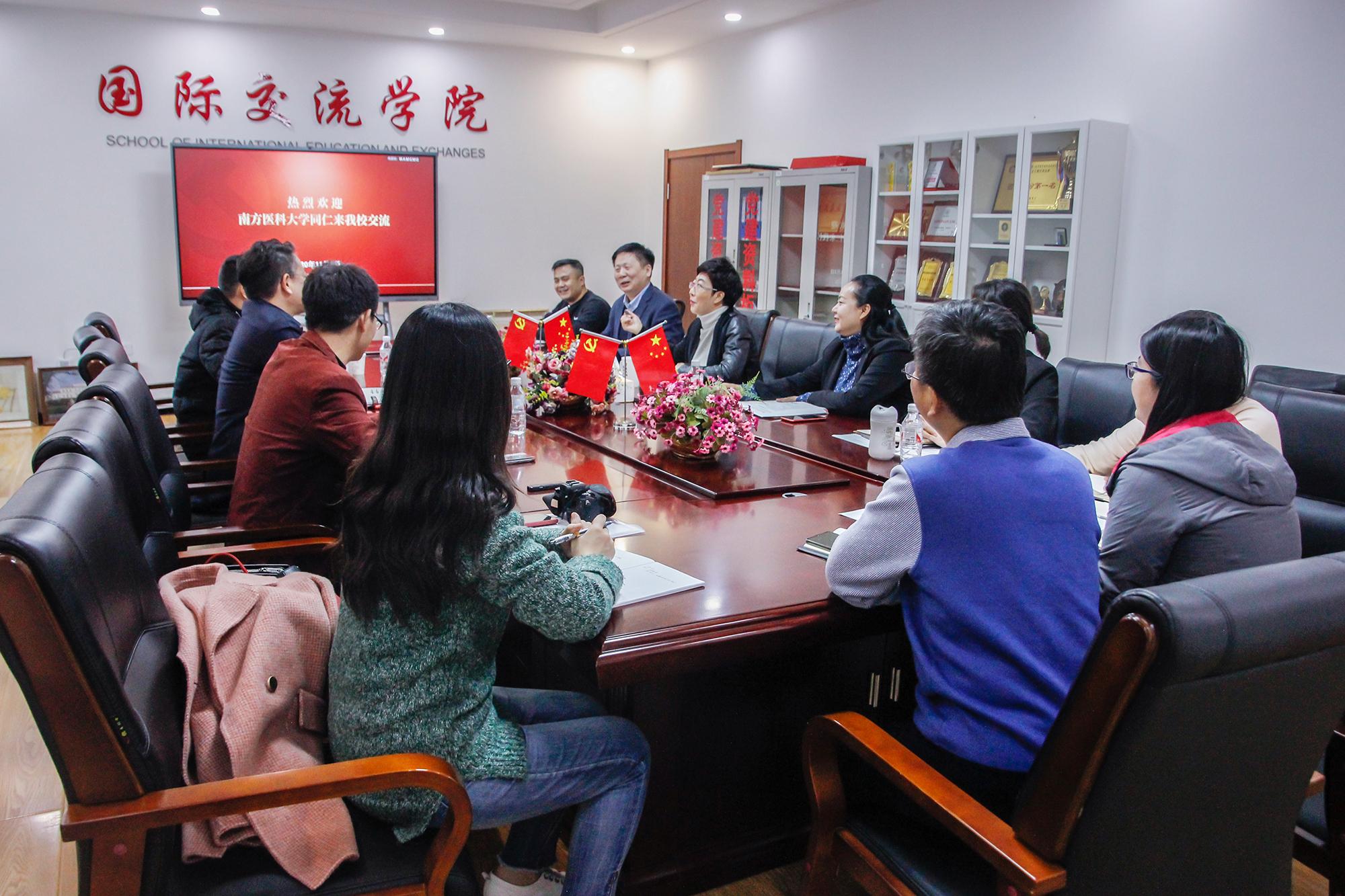 11月12日,南方医科大学国际教育学院党总支书记满强一行四人来到我校国际交流学院,就来华留学教育工作进行调研。国际交流学院直属党支部书记、院长骆颖,副院长岳喜华,副院长刘丹及各科室负责人参加了交流座谈。