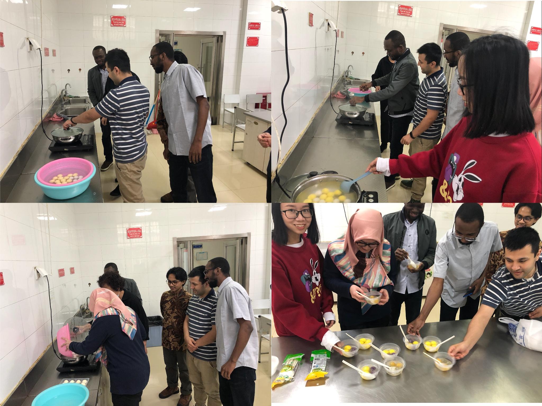 线上讲解结束后,同学们来到厨房,开始尝试第一次煮汤圆。 “过凉水,水沸腾前下汤圆,这样煮出的汤圆口感软糯,出锅时各个圆滚滚的,寓意阖家团圆”公寓宿管阿姨王彦华耐心地向同学们传授着煮汤圆小技巧。“这是我第一次看到五颜六色的汤圆,也第一次自己煮出‘珠圆玉润’的汤圆”土库曼斯坦博士研究生阿玛尼兴奋地说,“我好像品尝到多姿多彩的生活味道。”