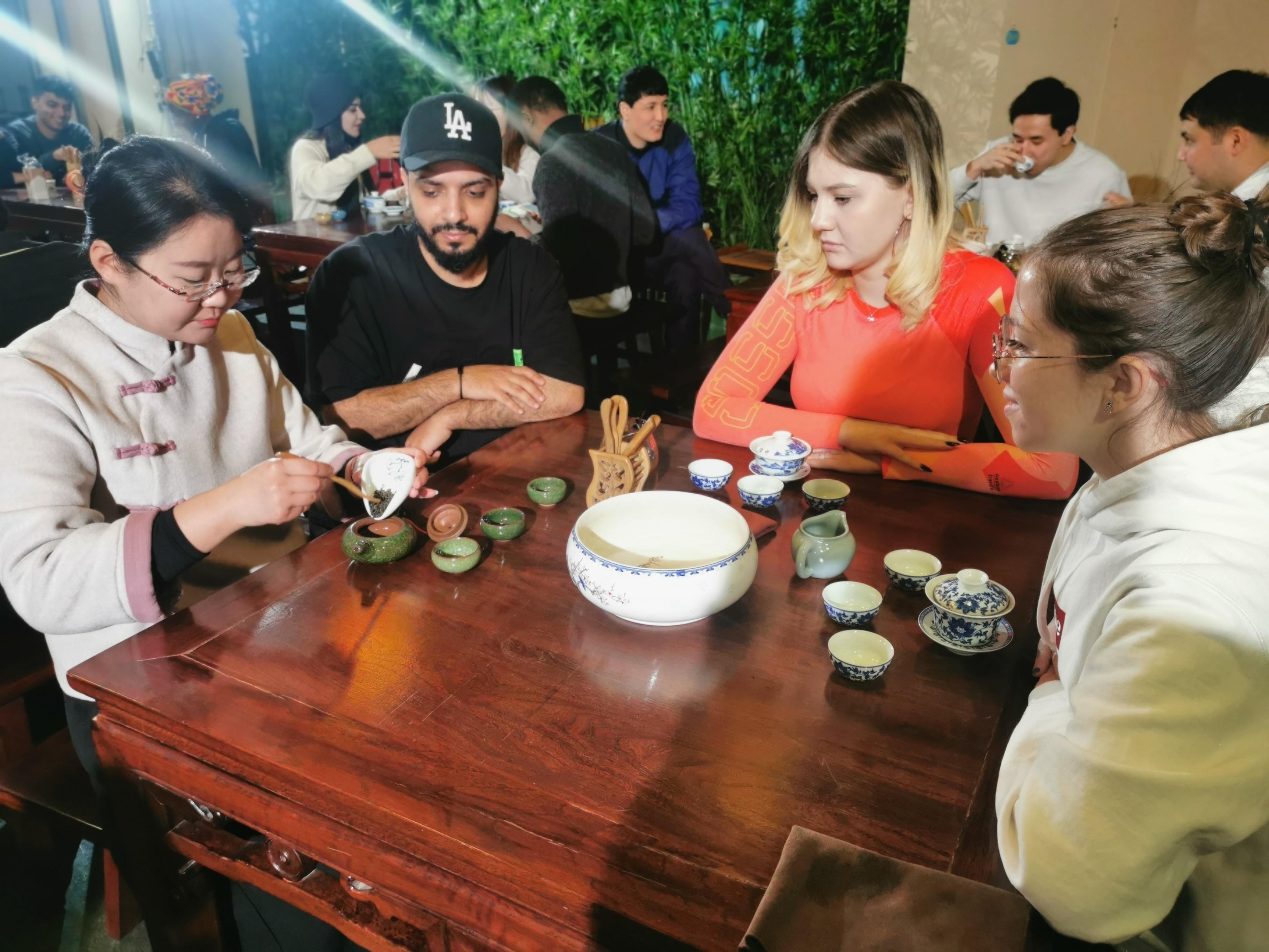 11月24日下午,来自也门、俄罗斯、孟加拉等国家的20名国际学生同中国茶艺志愿者们齐聚森林博物馆茶文化研创工作室,共同品味沁人心脾的中国茶,了解中国茶文化的悠久历史。