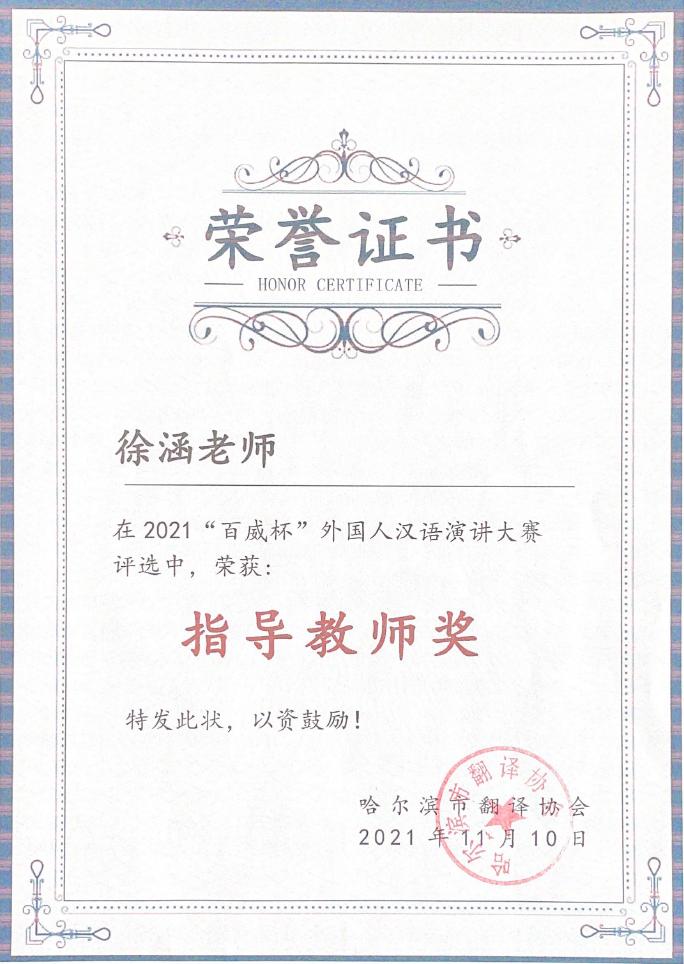 近日,2021年“百威杯”外国人汉语演讲大赛结果揭晓,我校国际学生视频作品获得三等奖1项、优秀奖1项、鼓励奖6项;国际学生辅导员徐涵获得指导教师奖。