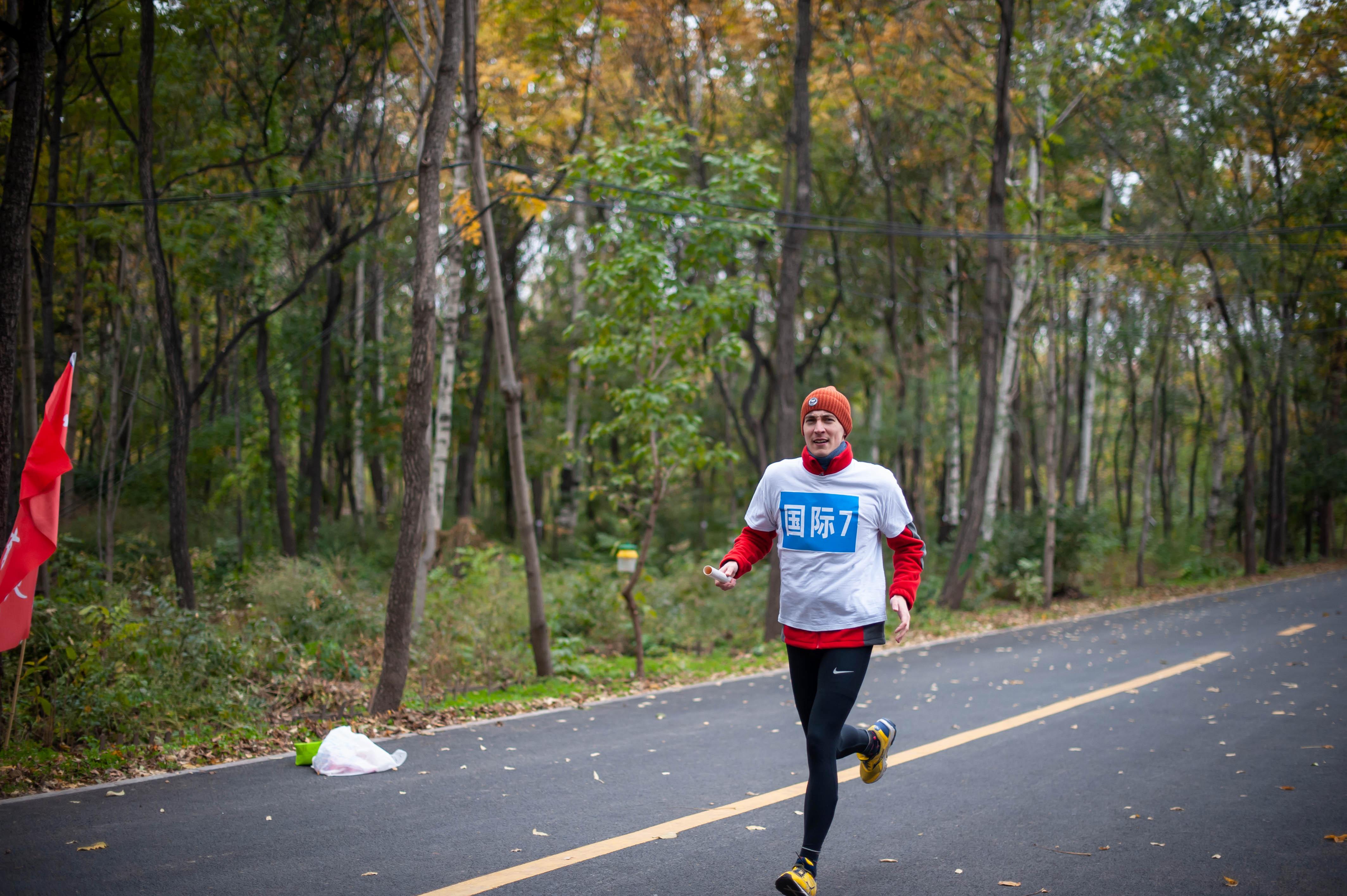 本次接力赛在林场举行,比赛距离超过11公里,由17个学院各派出一支队伍参加,每队共9棒,由5男4女9名同学组成。国际学院的同学们个个斗志昂扬,将必胜的信心写在脸上。赛前,参赛队员积极热身,跃跃欲试。发令枪一响,朝鲜籍本科生权英绿作为第一棒,像离弦的箭一样冲了出去,瞬间将整场的气氛推向了高潮,观众的加油声、欢呼声、喝彩声此起彼伏。各队运动员手持接力棒接续向着终点飞奔。小小接力棒,棒棒有力量!英国籍博士研究生纳森是第九棒,也是最后一棒,虽然已经陆续有队伍完成了比赛,但他依旧拼尽全力冲向终点,此时道路两旁的同学们纷纷为奔跑的纳森喝彩鼓劲。