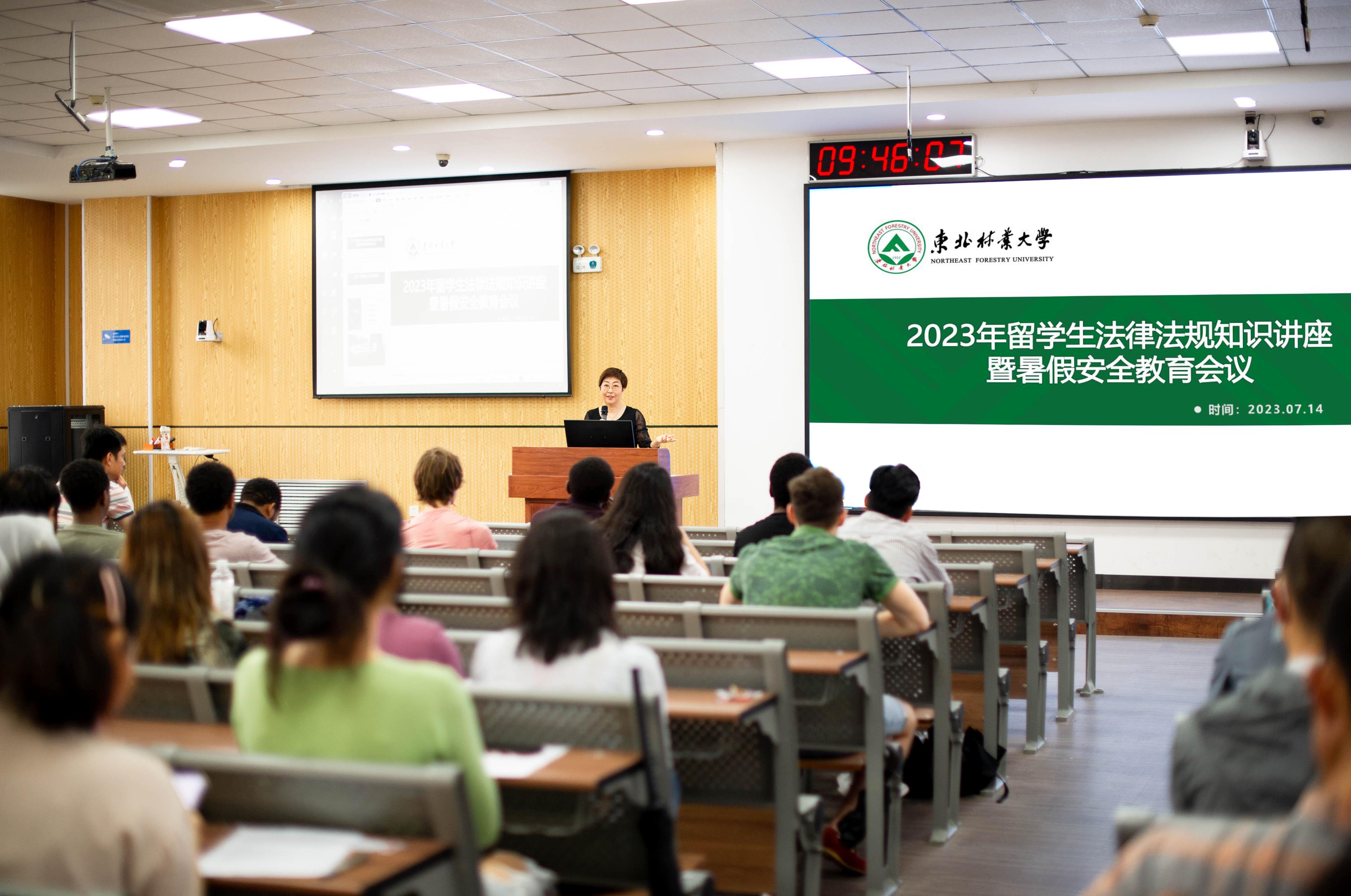 7月14日,国际交流学院在奥林楼401召开留学生法律法规知识讲座暨暑假安全教育会议,国际交流学院留管工作人员和全体在校留学生参会。