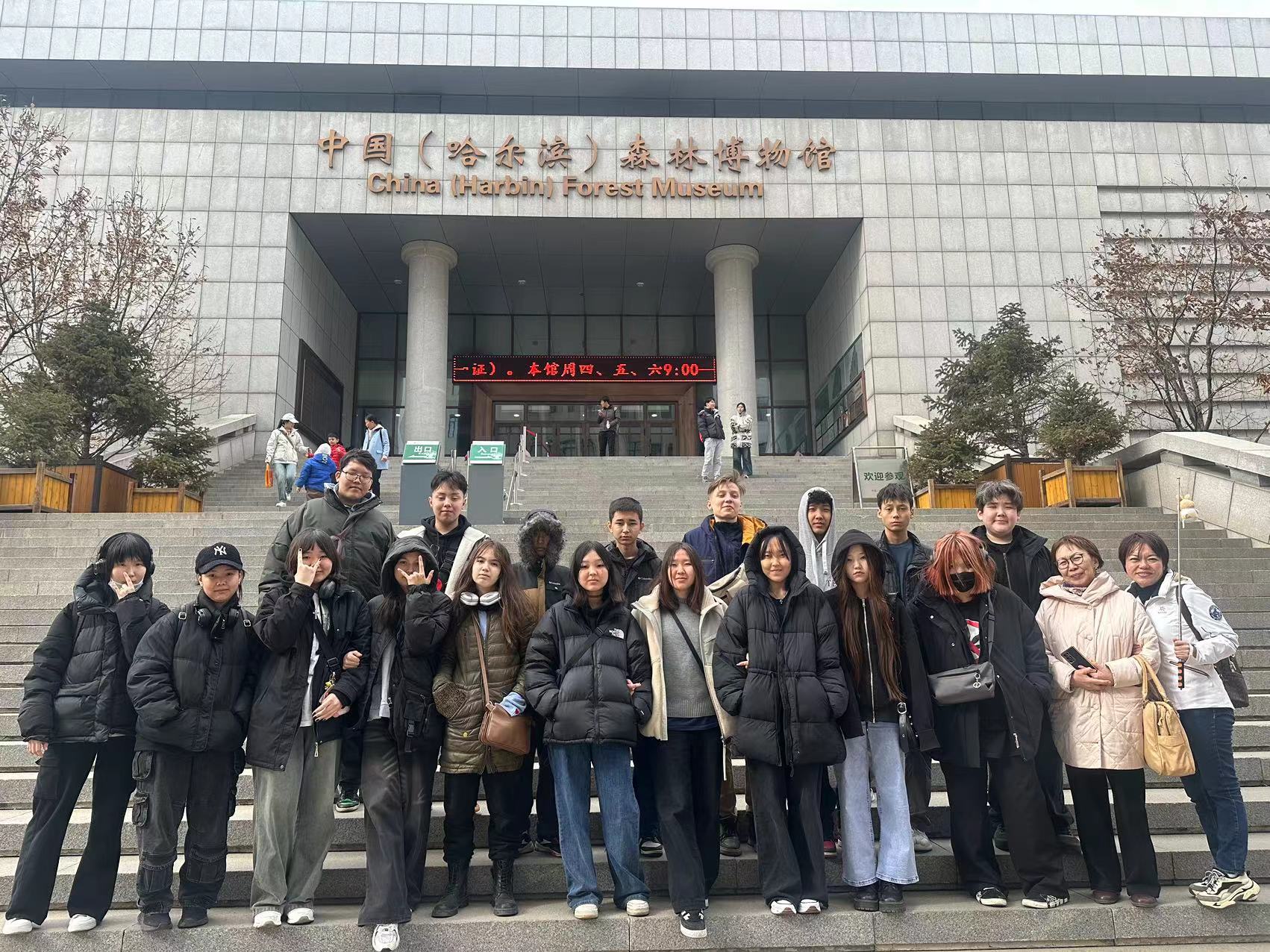 代表团参加了由我校启林研究会组织的中国戏剧体验活动,同学们了解了“生、旦、净、末、丑”五种京剧行当,体验了髯口、凤冠等京剧中的服饰和道具,并欣赏了各种京剧唱腔表演,现场充满了掌声和欢笑声。文化体验活动结束后,代表团参观了中国(哈尔滨)森林博物馆。