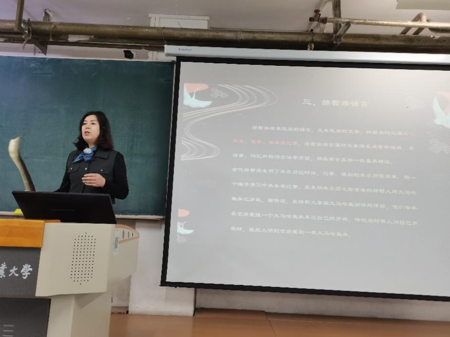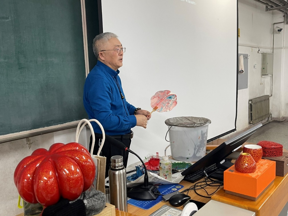 上午的课程聚焦鱼皮画技艺,“中国马克思主义与当代”授课教师刘伟杰首先讲解了授课目的和要求,并向在场师生详细介绍了石老师在非遗传承领域的丰硕成就与深厚造诣。