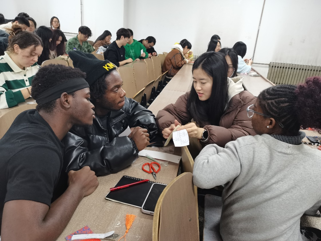 两次授课均采用了“理论讲授+动手实践”相结合的模式,吸引博士研究生参与课堂,让非遗从静态展示走向动态传承。授课过程中,中外学生积极参与,互相交流,氛围热烈。同学们纷纷表示,这样灵动的课堂让他们受益匪浅。“专家进课堂”的模式,超越了单纯的知识传授,实现了文化熏陶、价值塑造与学术启迪的深度融合,使思政课更具感染力与说服力;中外学生同课堂共研学的形式,不仅促进了中外青年友好交流,也为文明互鉴搭建了新的平台。