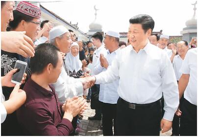 2016年7月19日上午,习近平在宁夏银川市永宁县闽宁镇原隆移民村,看望慰问移民群众。