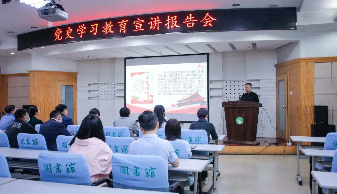 刘经伟教授分别从深入学习领会习近平总书记关于党的历史的重要论述,充分认识开展党史学习教育的重要意义;认真研读党史基本著作,全面了解中国共产党百年奋斗的光辉历程和历史性贡献;全面了解三个伟大飞跃和一个根本成就和汲取强大精神力量推动各项工作开创新局面四个方面,运用详实的历史资料回顾我党百年历史中的重要事件,并重点解读了三个伟大飞跃背后的党史故事。