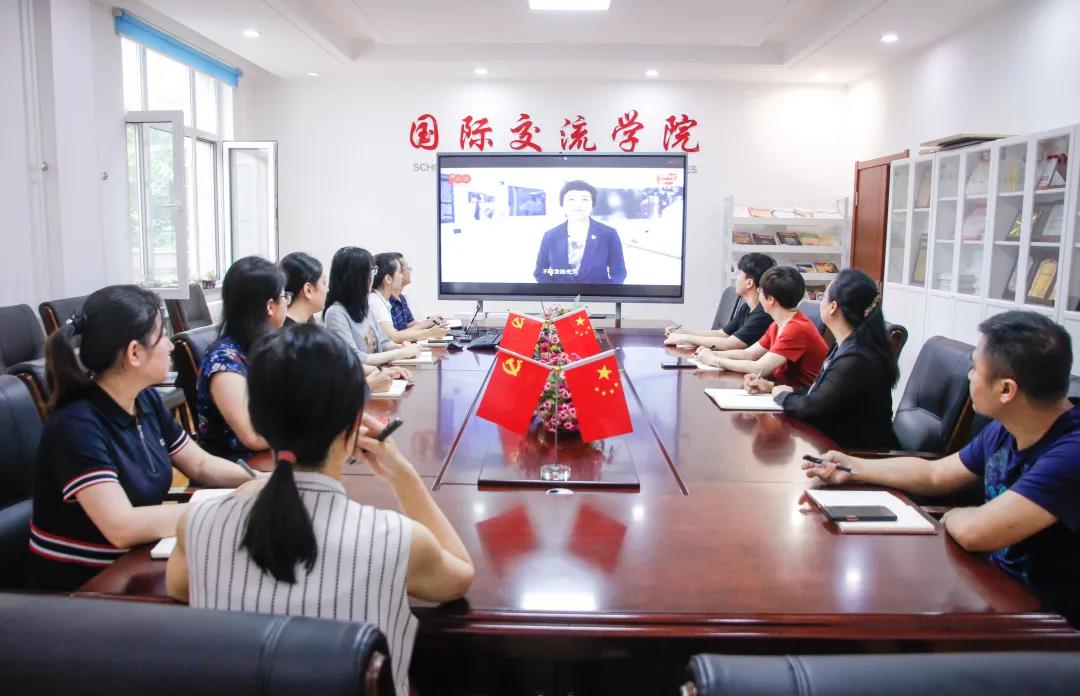7月6日,国际交流学院直属党支部组织全体教职工在学院会议室收看“明理增信 崇德力行”庆祝建党百年高校示范微党课“七一”特别节目。