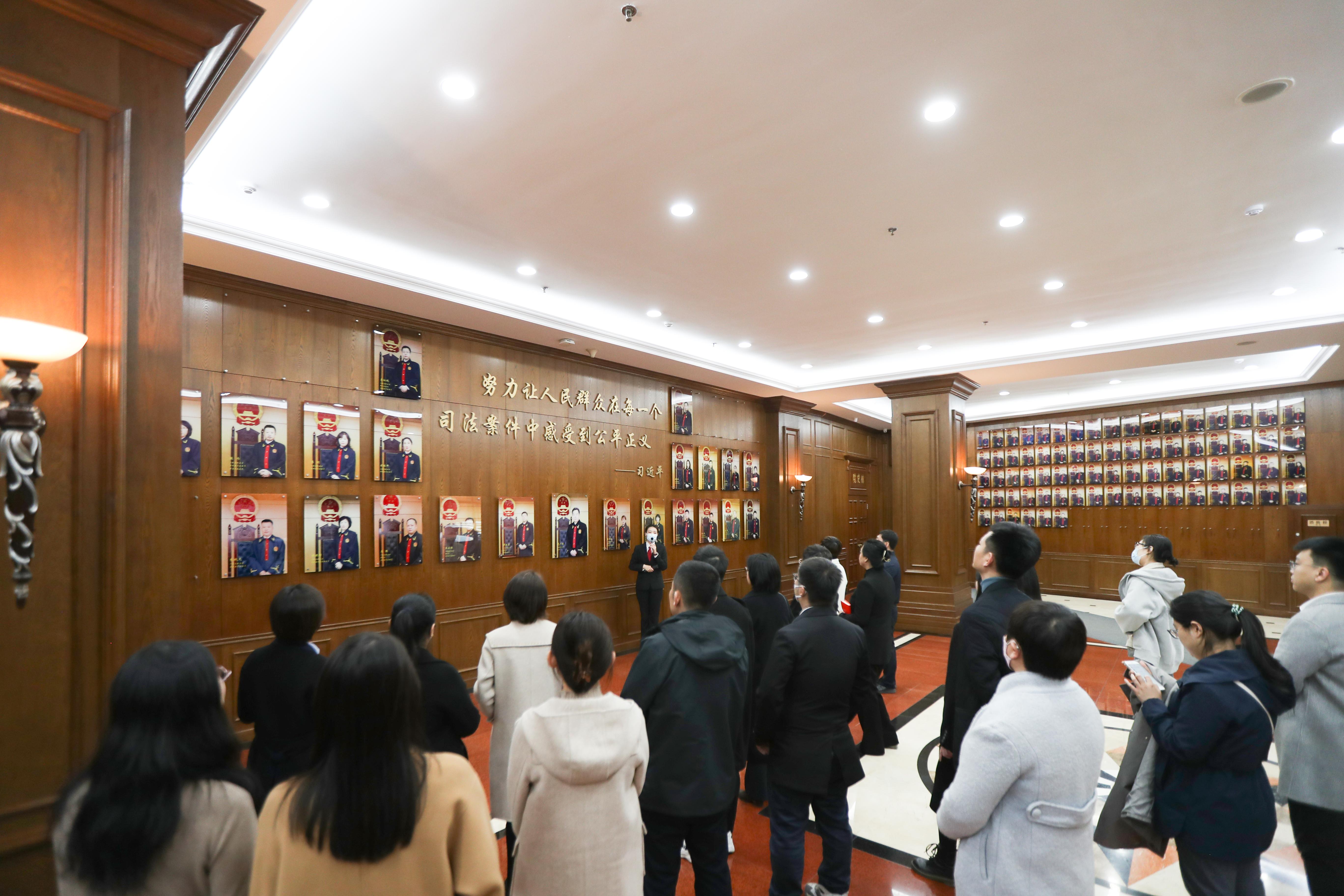 在工作人员的引领下,大家依次参观了党建大厅、领袖故事长廊、科技法庭、法官监督墙、图书馆、院史馆、司法之光文化长廊、新闻发布厅以及省高院的一体化管理平台,全面了解中国法治发展历史,深切感受中国共产党依法治国取得的重大成就和龙江法治建设的巨大变化。
