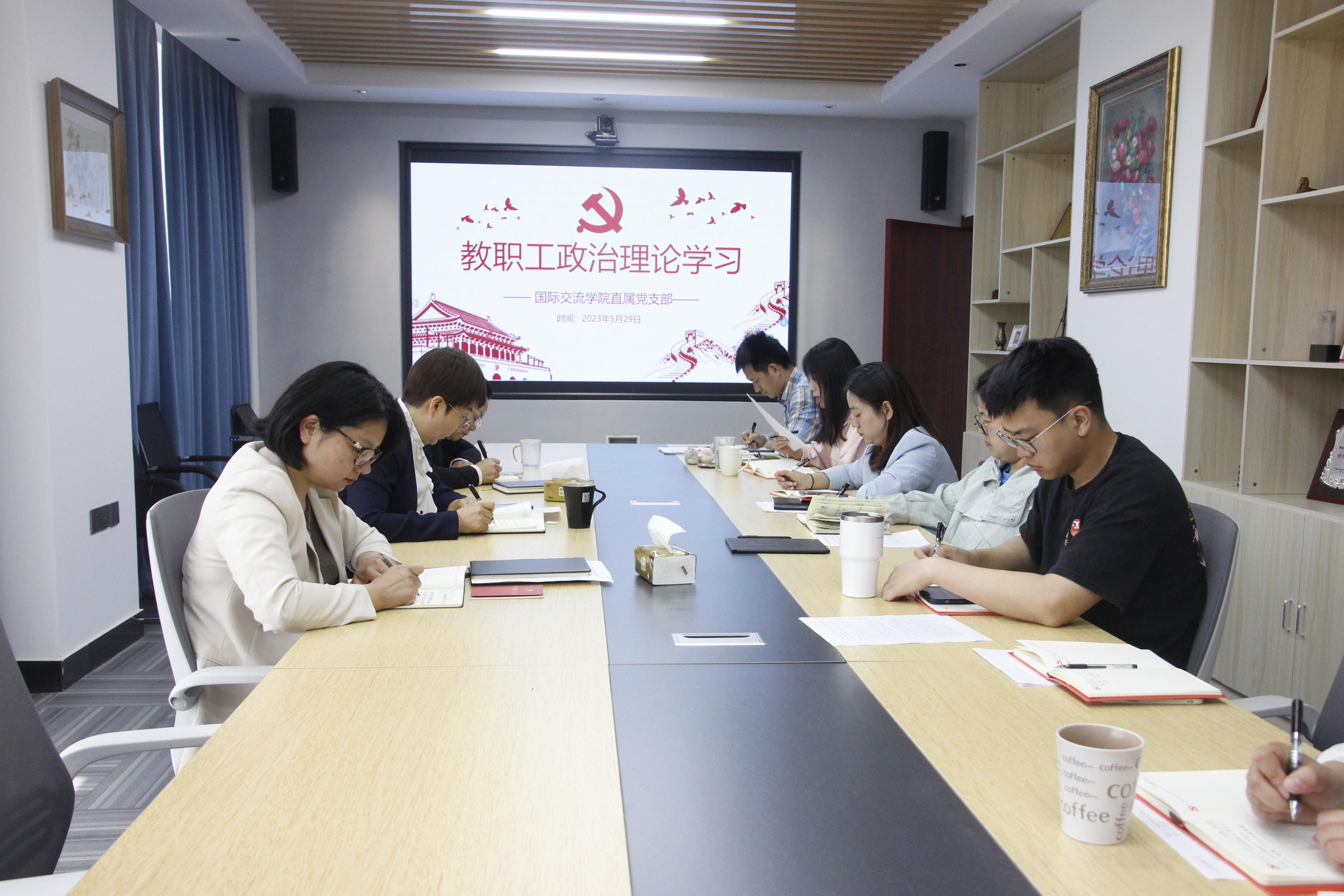 5月29日上午,国际交流学院直属党支部在学院会议室组织开展教职工政治理论学习活动,进一步推进主题教育理论学习走深走实。