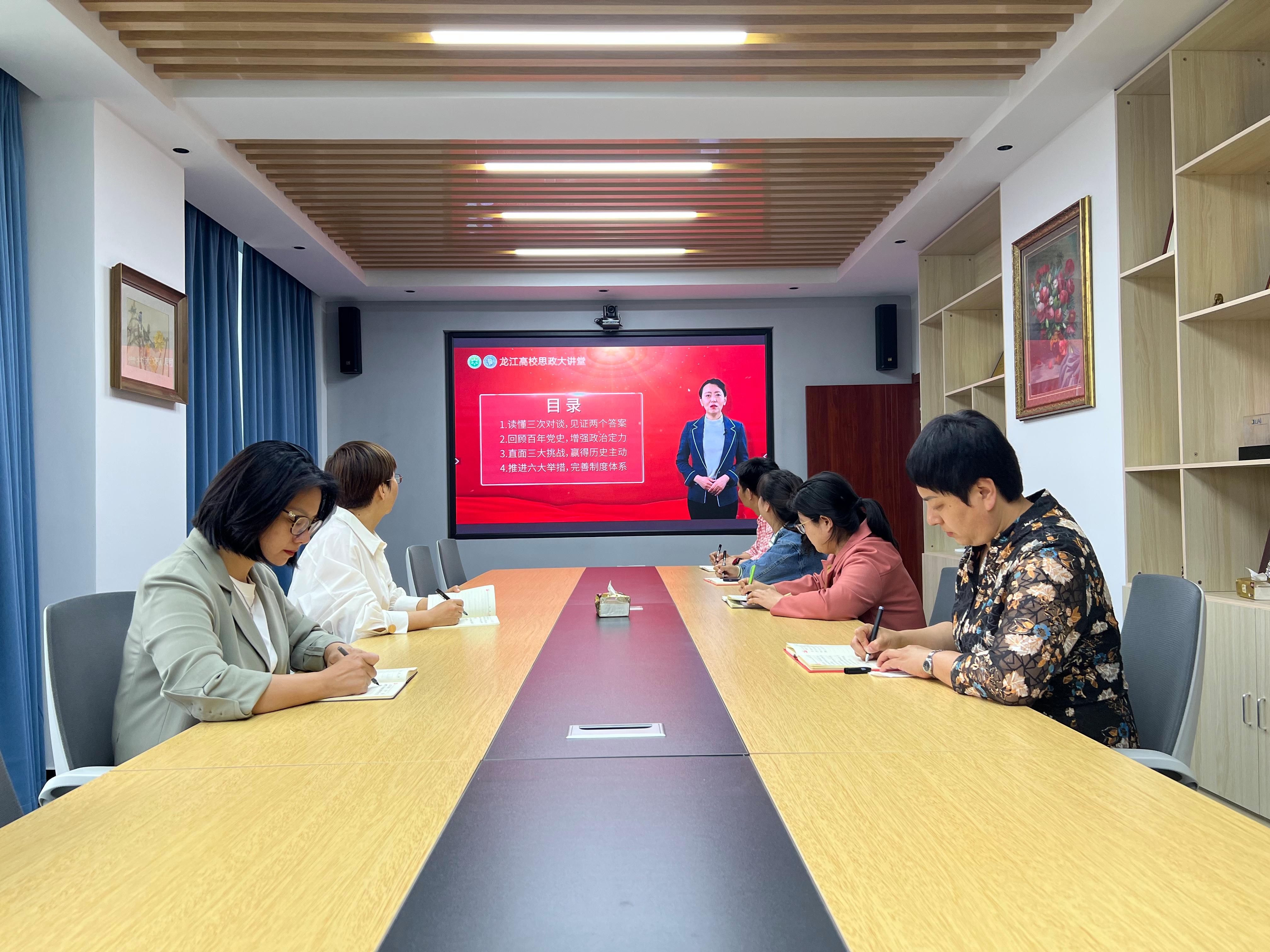 6月8日下午,国际交流学院直属党支部在学院会议室组织全体教职工收看 “龙江高校云端读书班”第三期:《自我革命:跳出历史周期率的第二个答案》。