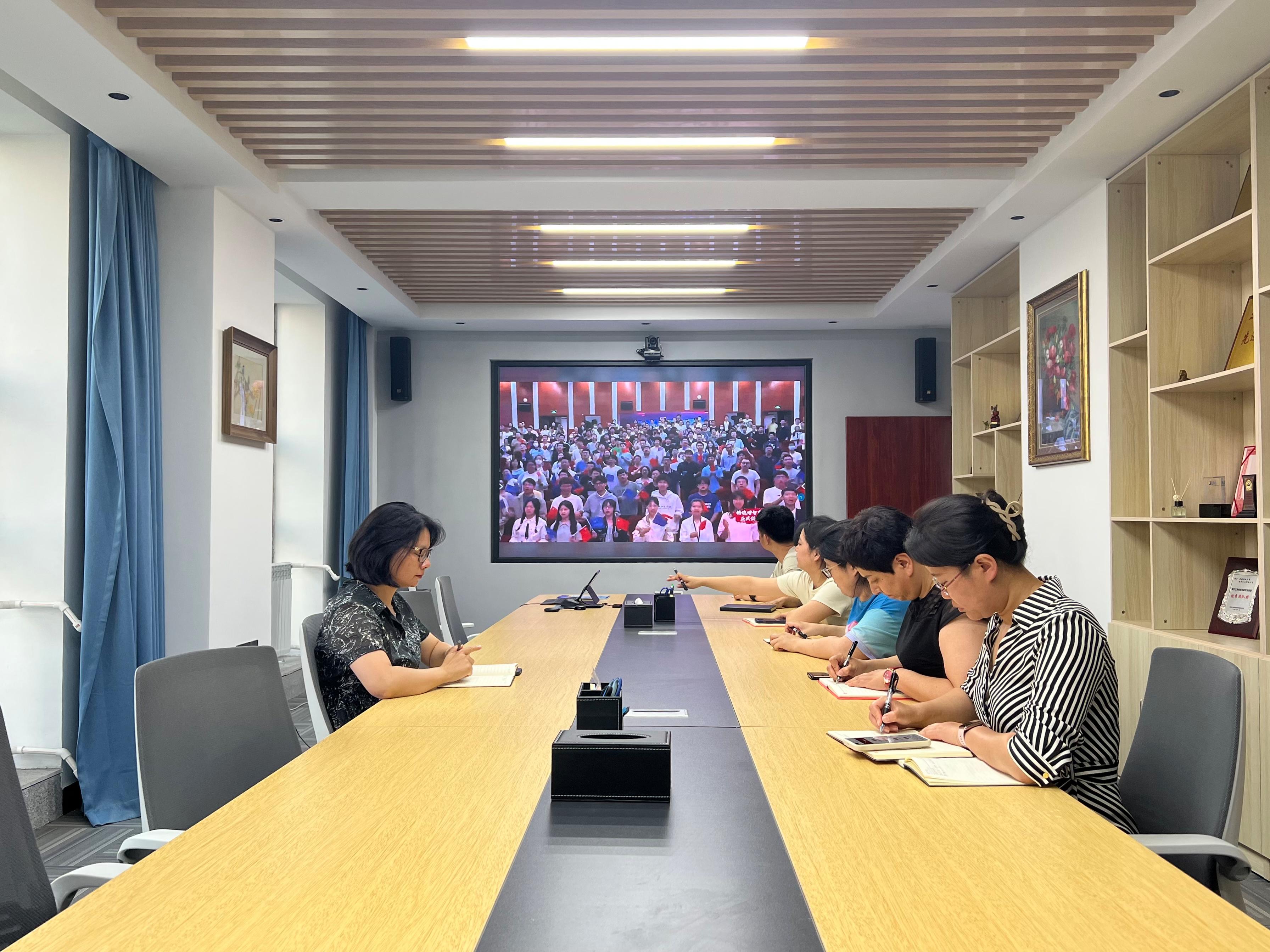 6月25日下午,国际交流学院直属党支部组织全体教职工在学院会议室收看2023年高校党组织示范微党课展播第四讲,引领广大教职工强化理论武装,深入学习习近平新时代中国特色社会主义思想。