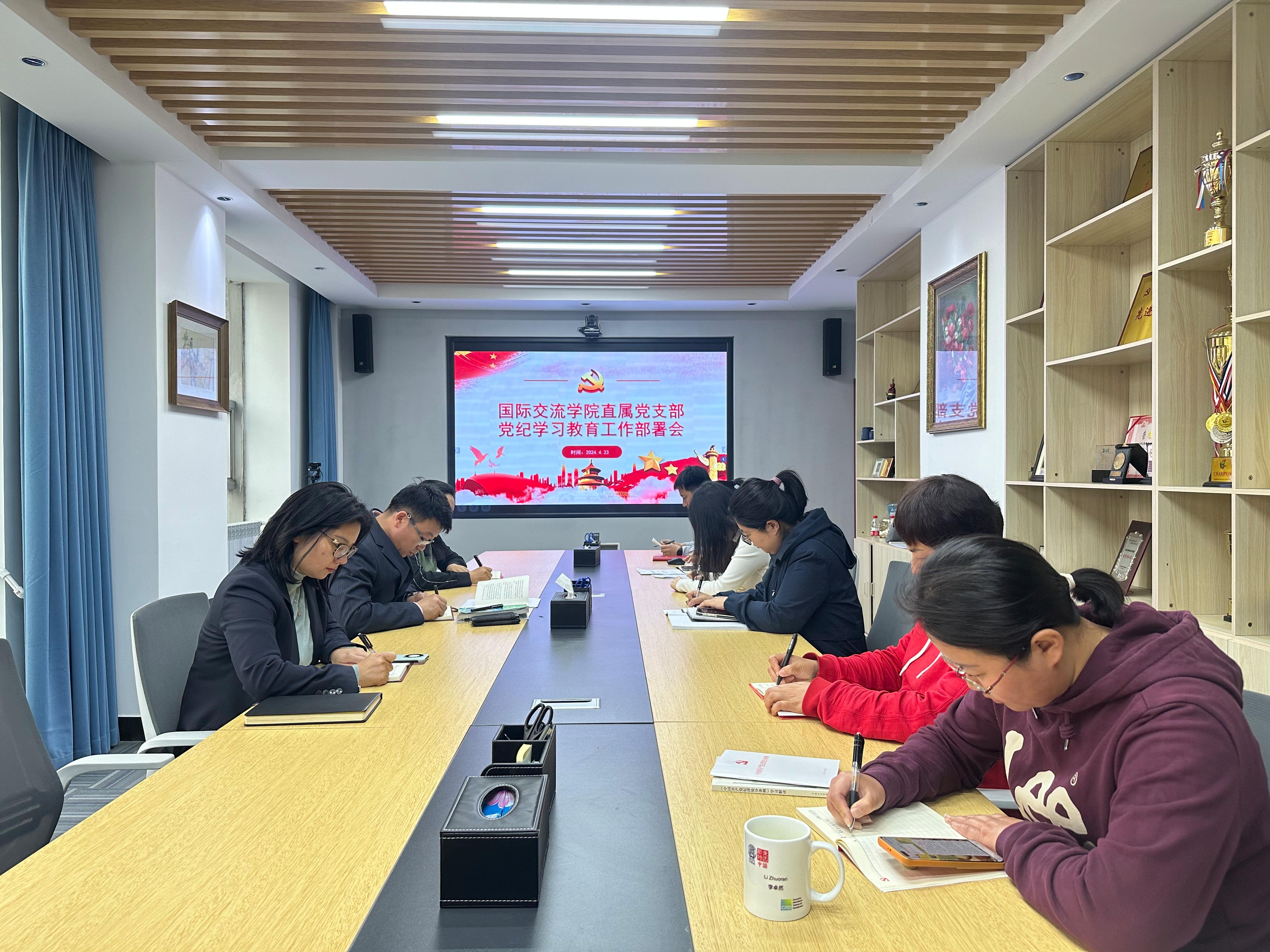 4月23日,国际交流学院直属党支部召开党员大会,传达学习习近平总书记关于党纪学习教育的重要讲话指示精神和中共中央办公厅印发《关于在全党开展党纪学习教育的通知》等文件精神,启动部署支部党纪学习教育工作。