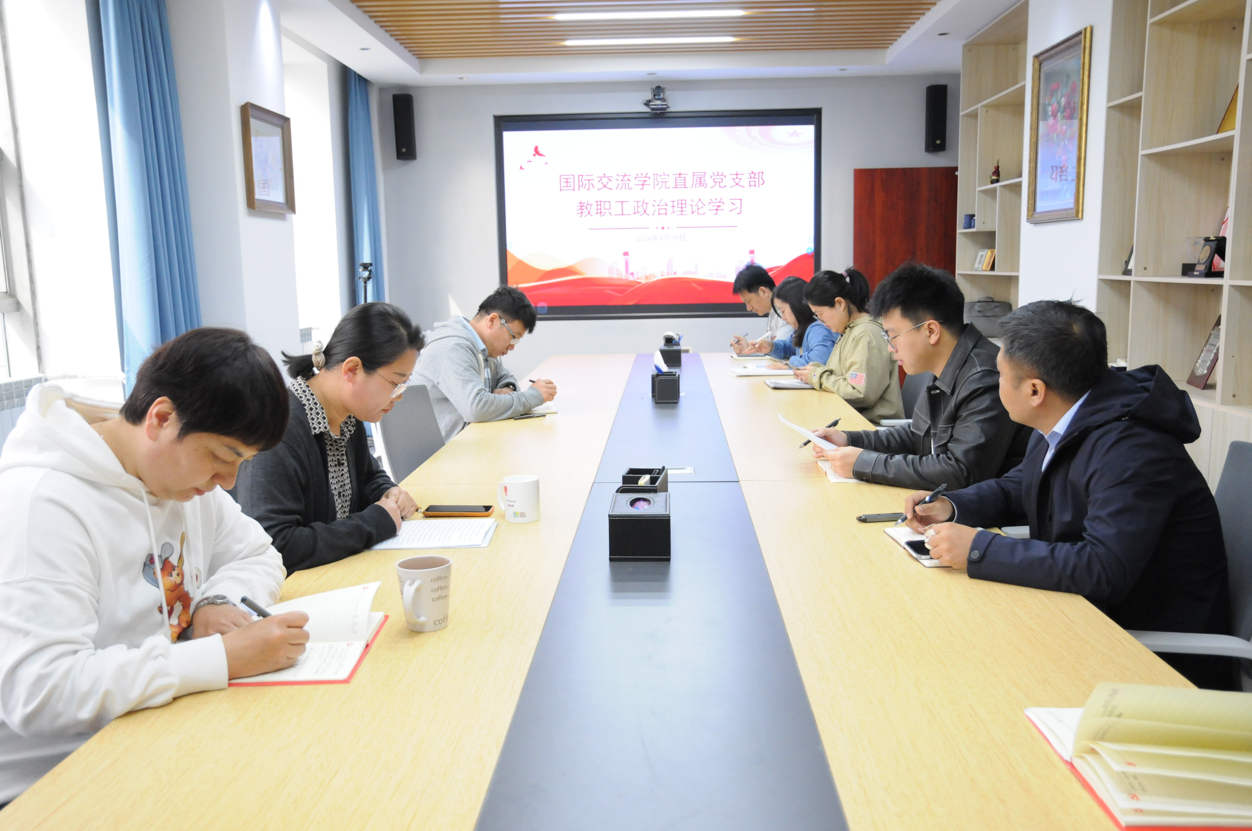 4月29日,国际交流学院直属党支部组织全体教职工在学院会议室开展2024年第五次政治理论集中学习。