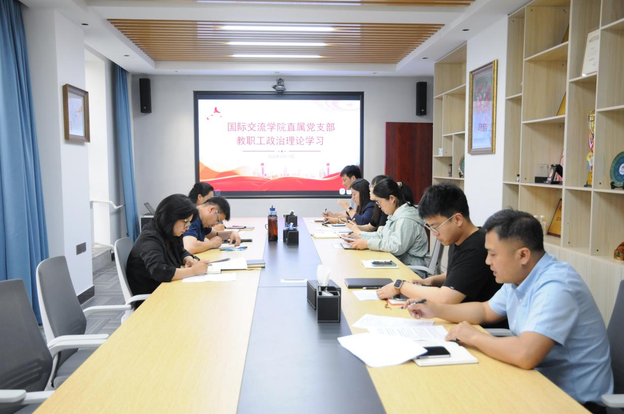 6月11日,国际交流学院直属党支部组织全体教职工在学院会议室召开理论学习中心组(扩大)会议。