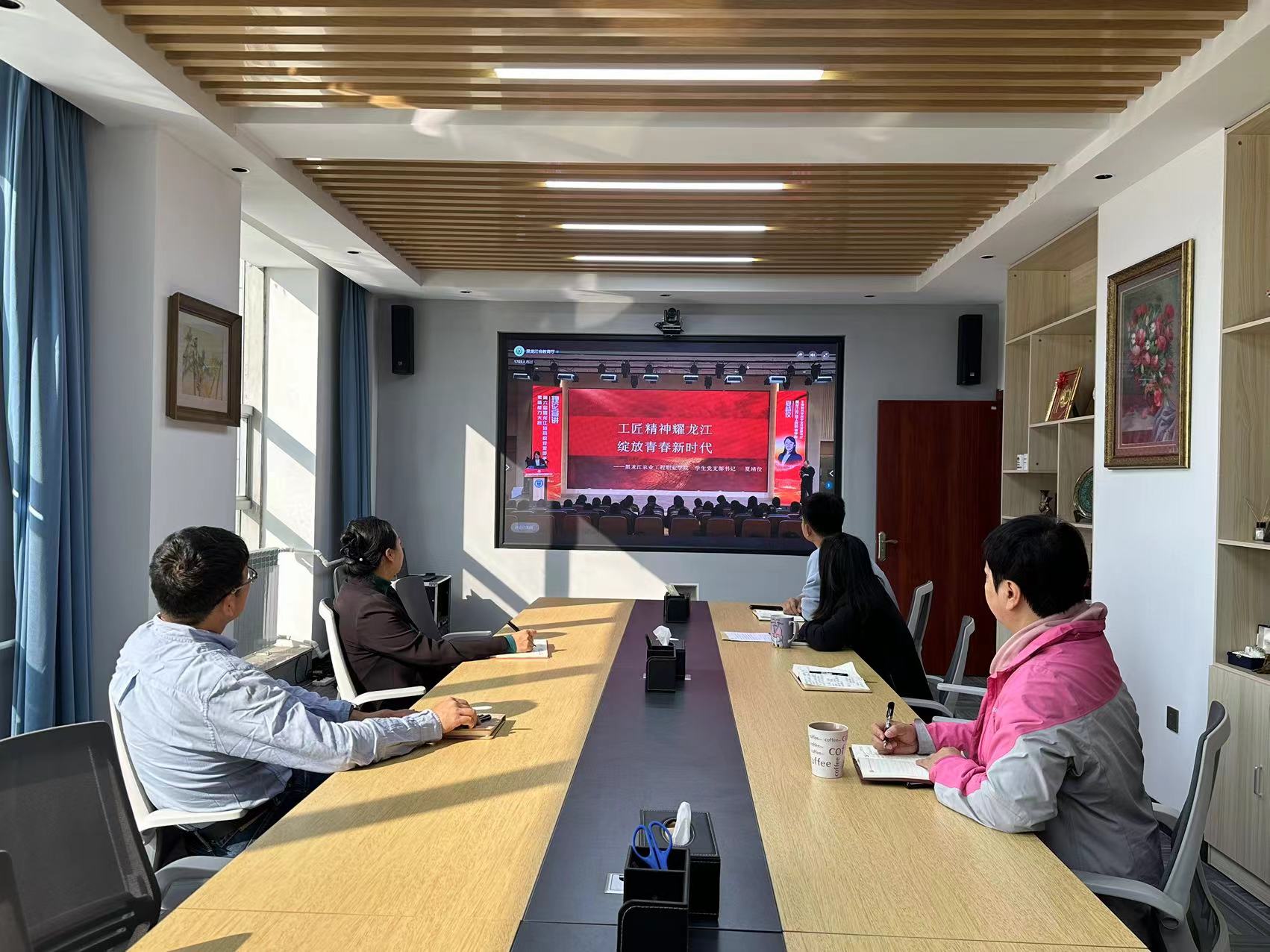 9月26日,国际交流学院直属党支部组织教职工在学院会议室线上观摩第六届黑龙江省高校党支部书记素质能力大赛。