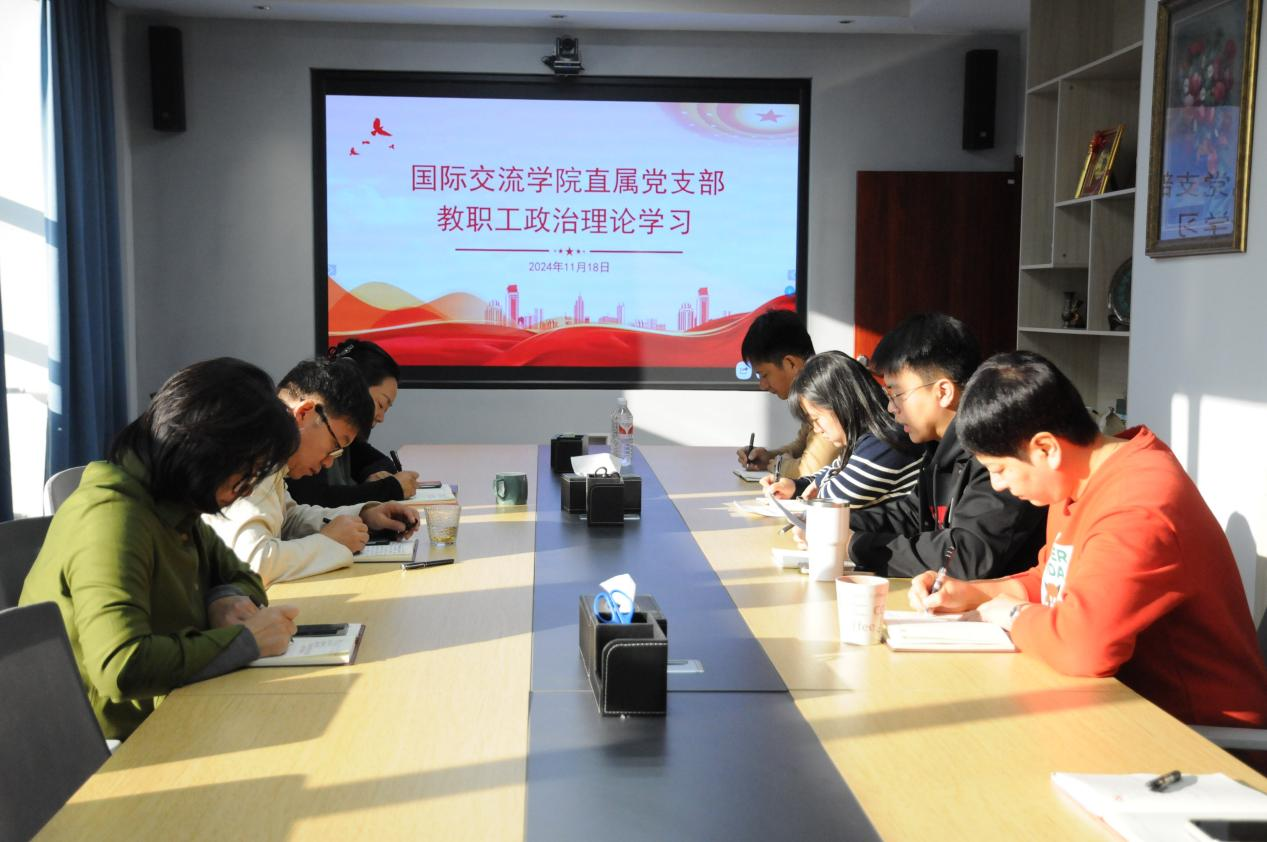 11月18日,国际交流学院直属党支部组织全体教职工在学院会议室开展政治理论学习活动。