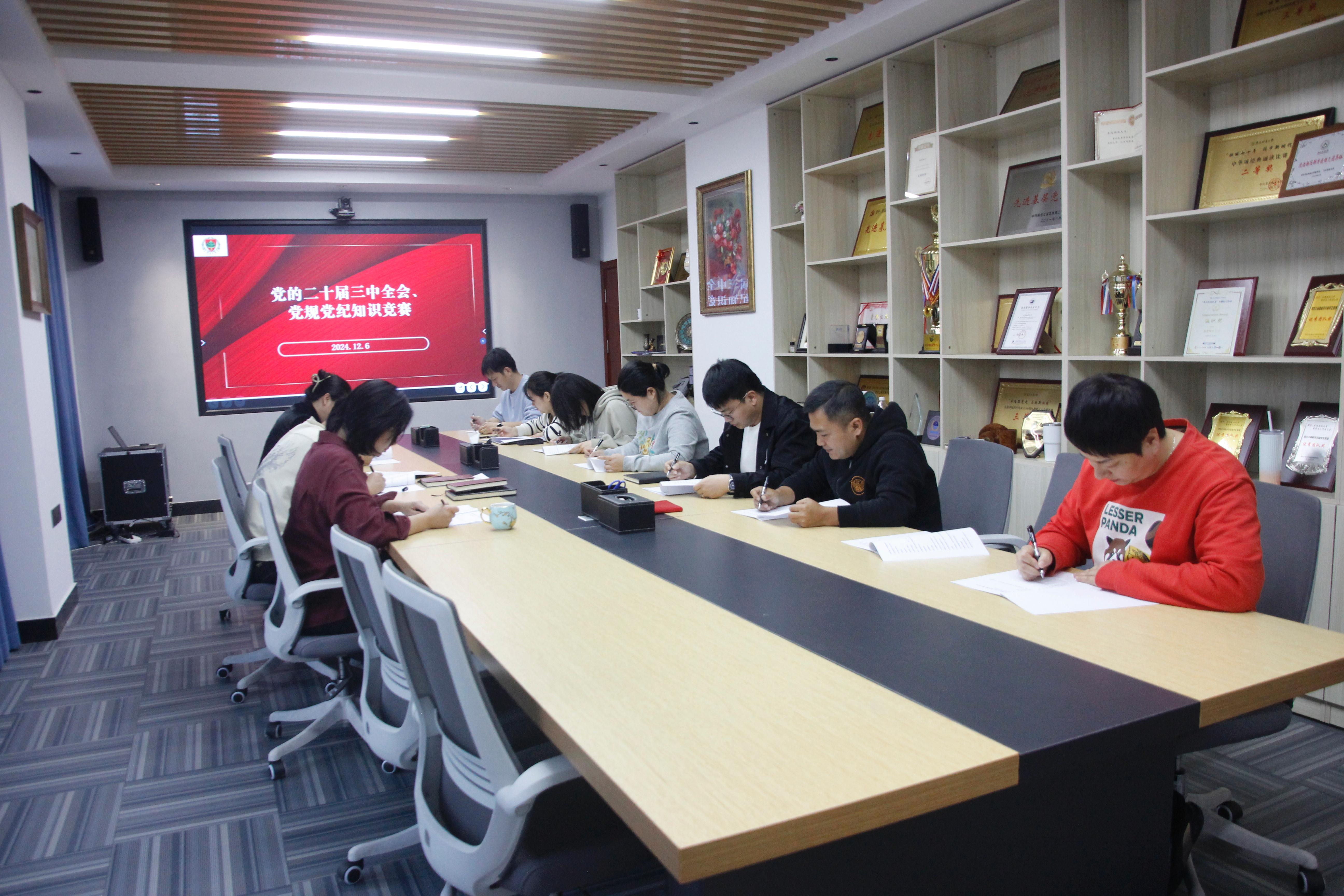 竞赛采用书面答题方式进行,题型设有填空、单选、多选和判断,内容涵盖党的二十届三中全会、《中国共产党纪律处分条例》等内容。竞赛过程中,大家精神饱满、认真审题、沉稳作答,展现了扎实的理论功底。