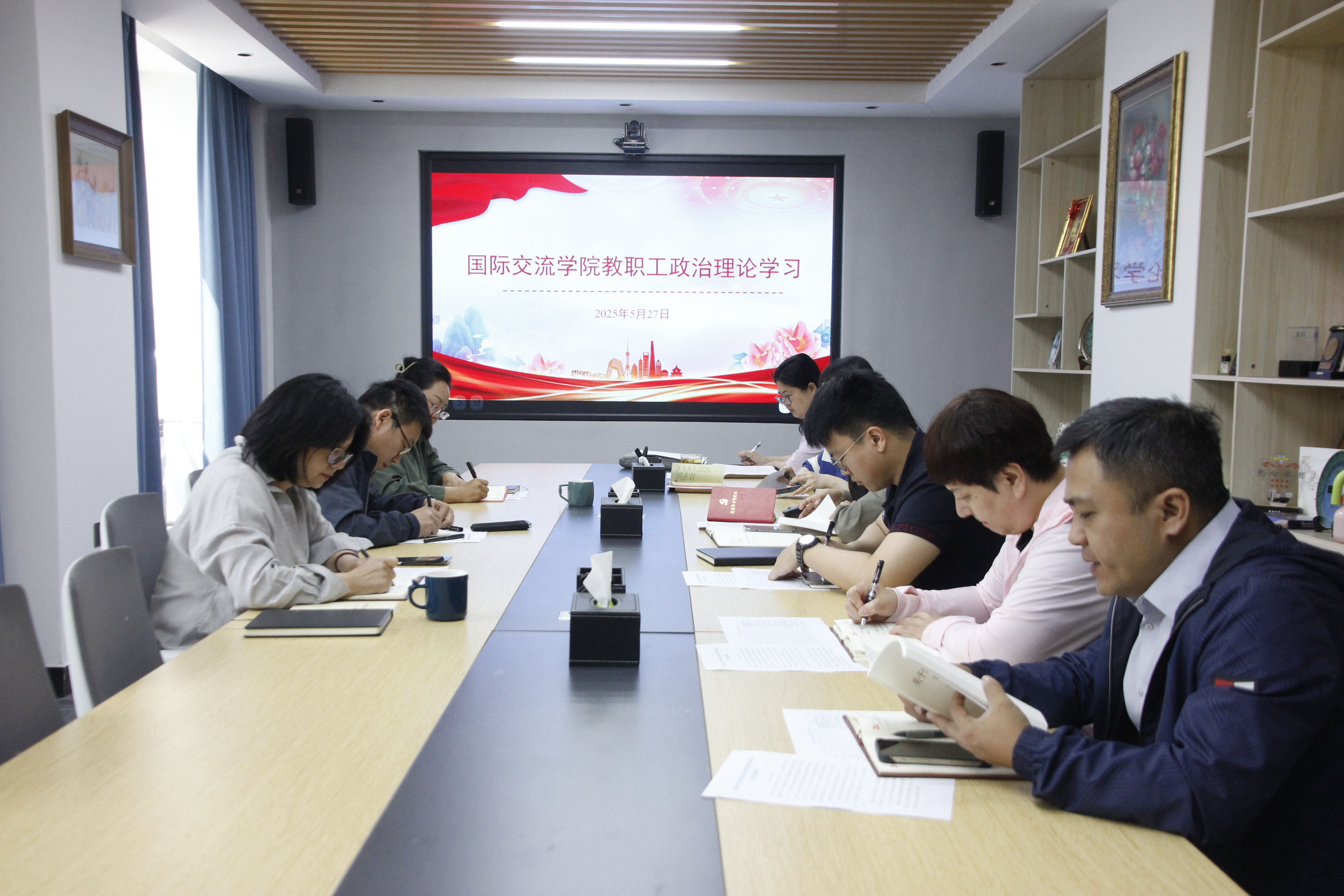 5月27日,国际交流学院直属党支部组织全体教职工在二楼会议室开展政治理论学习。