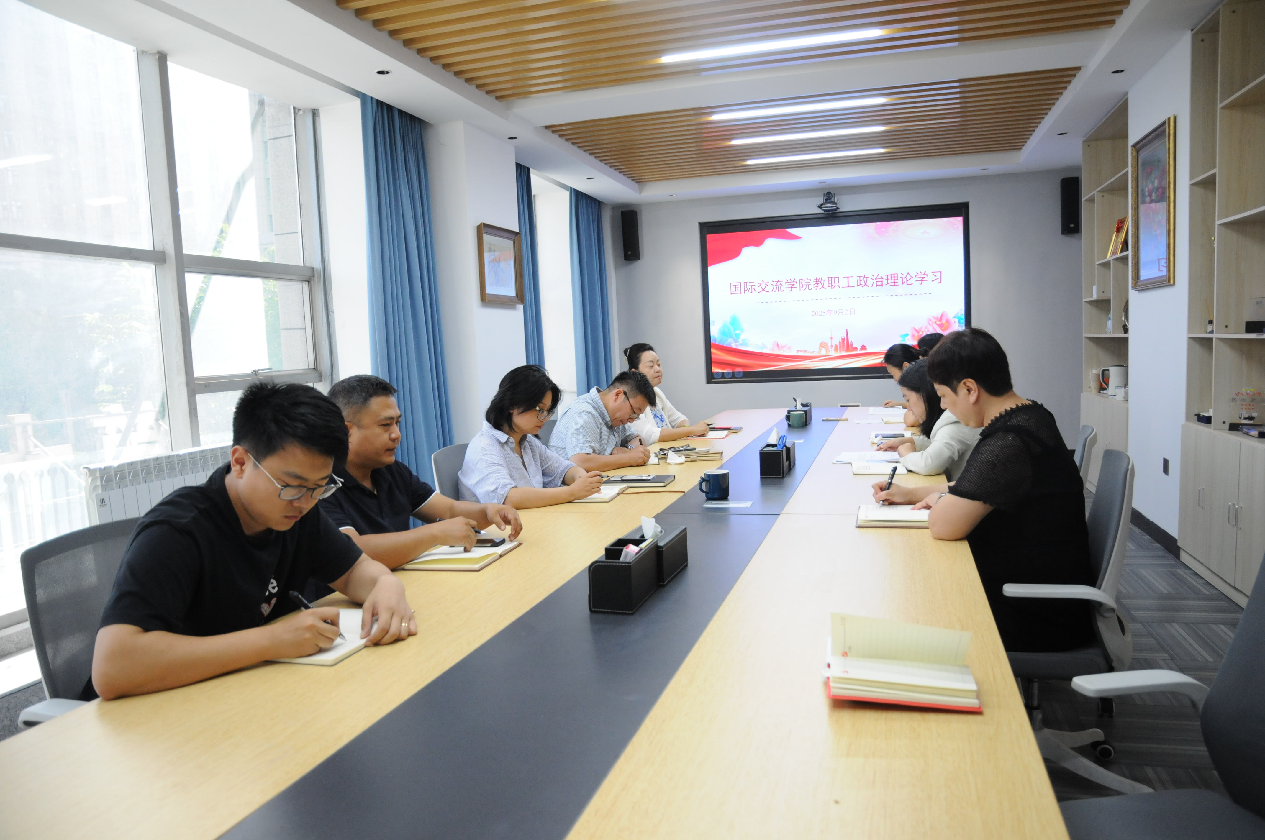 9月2日,国际交流学院直属党支部组织全体教职工在二楼会议室开展政治理论学习。