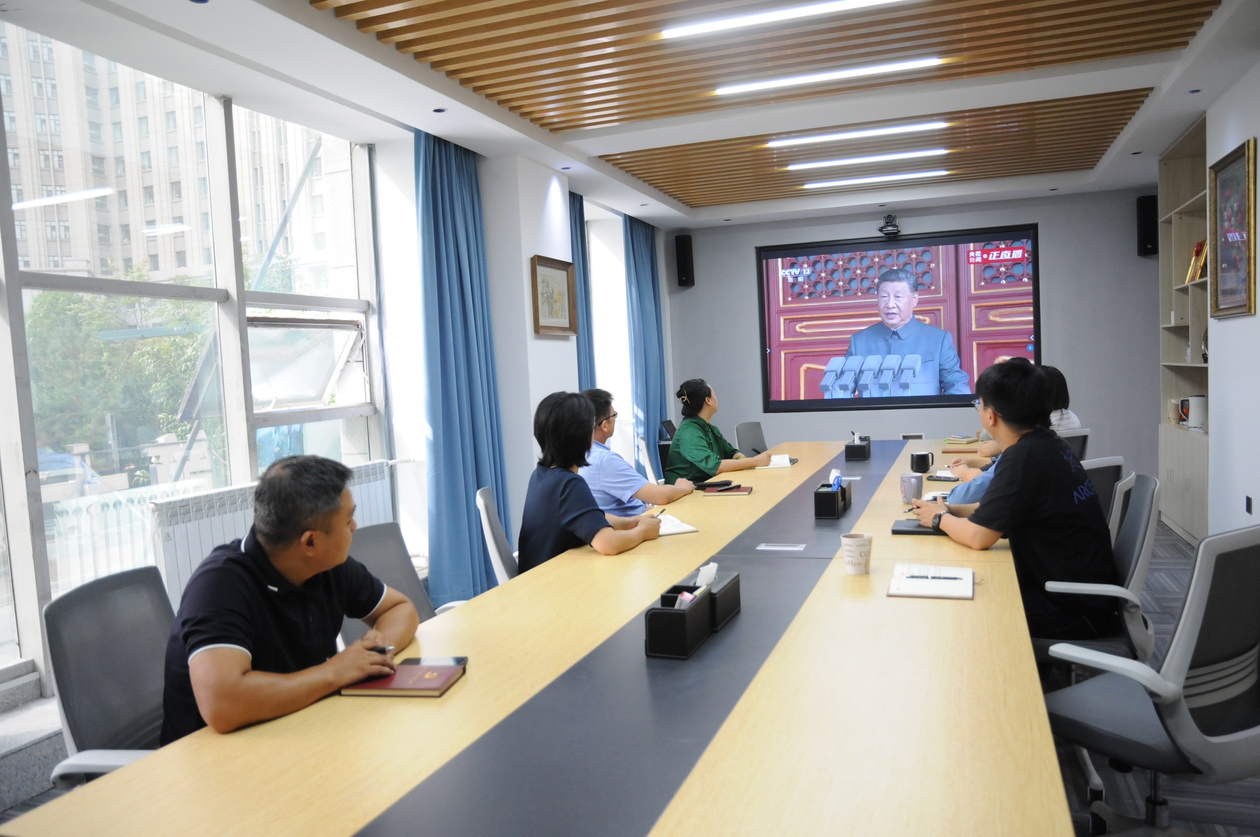 收看过程中,大家认真聆听习近平总书记的重要讲话精神,深刻领会中国人民抗日战争的正义性质与历史地位。随后,大家收看阅兵仪式,共同见证威武雄壮的受阅方阵、尖端先进的受阅装备与和平鸽展翅高飞的宏大场面。