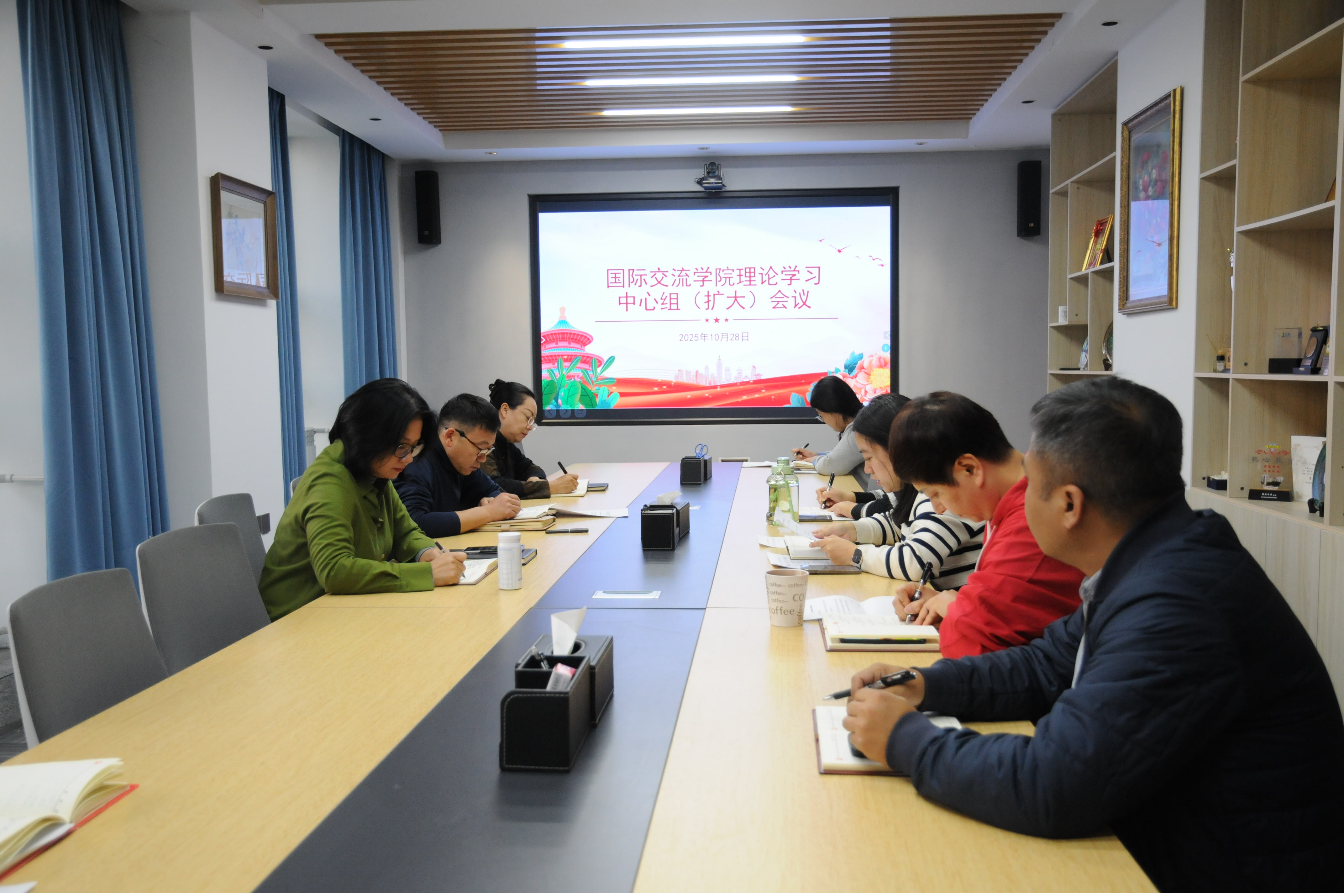 10月28日,国际交流学院直属党支部在二楼会议室开展中心组(扩大)学习,专题学习中国共产党第二十届中央委员会第四次全体会议公报。