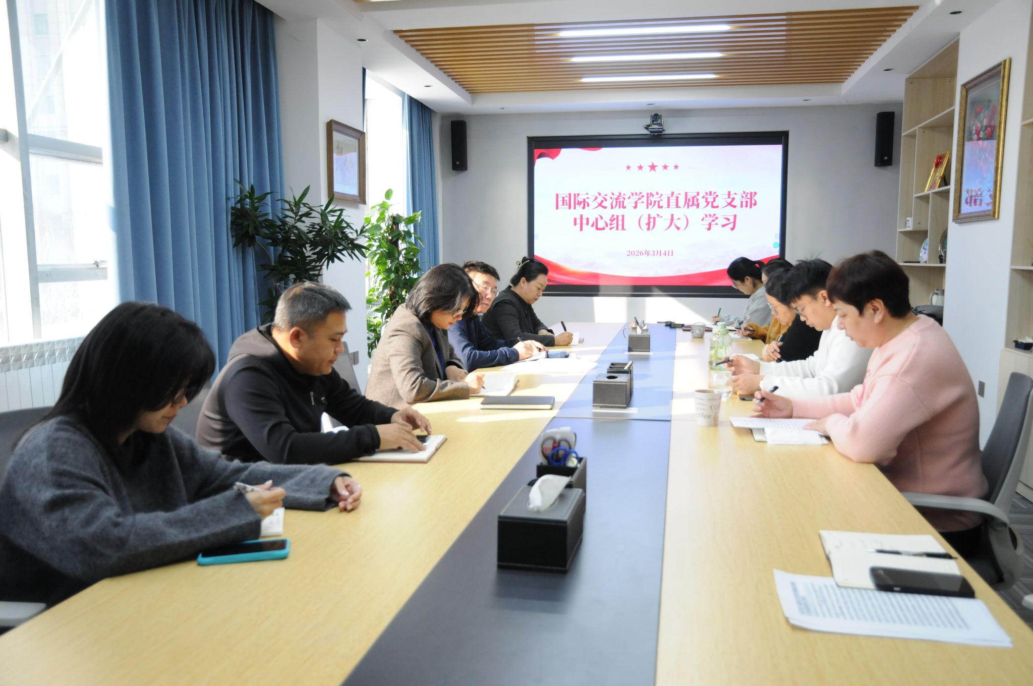 3月4日,国际交流学院直属党支部在二楼会议室开展中心组(扩大)学习,共同学习习近平总书记在春节团拜会上的讲话和在《求是》杂志上发表的文章《让愿担当、敢担当、善担当蔚然成风》。