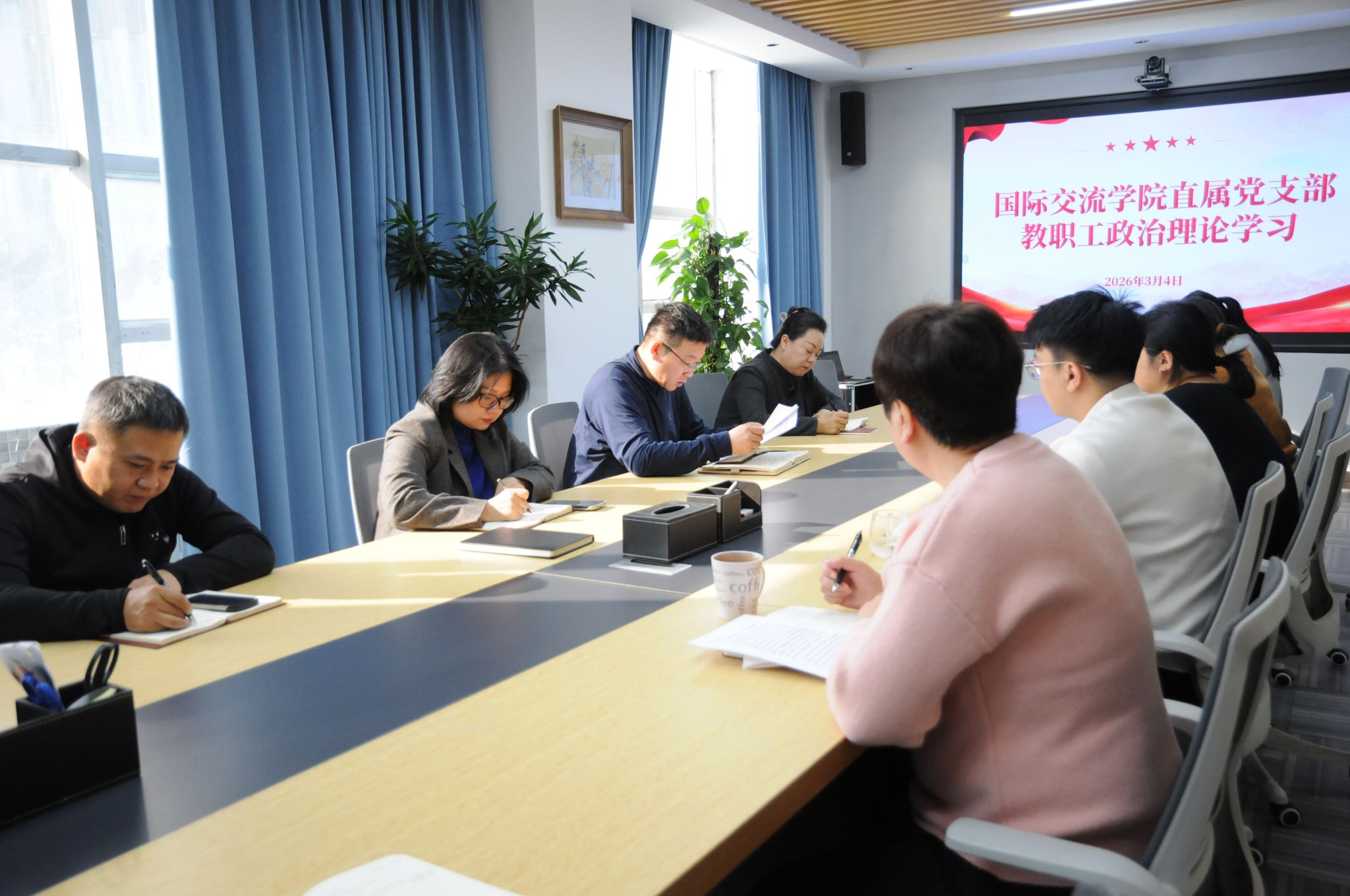3月4日,国际交流学院直属党支部组织全体教职工在二楼会议室开展政治理论学习。