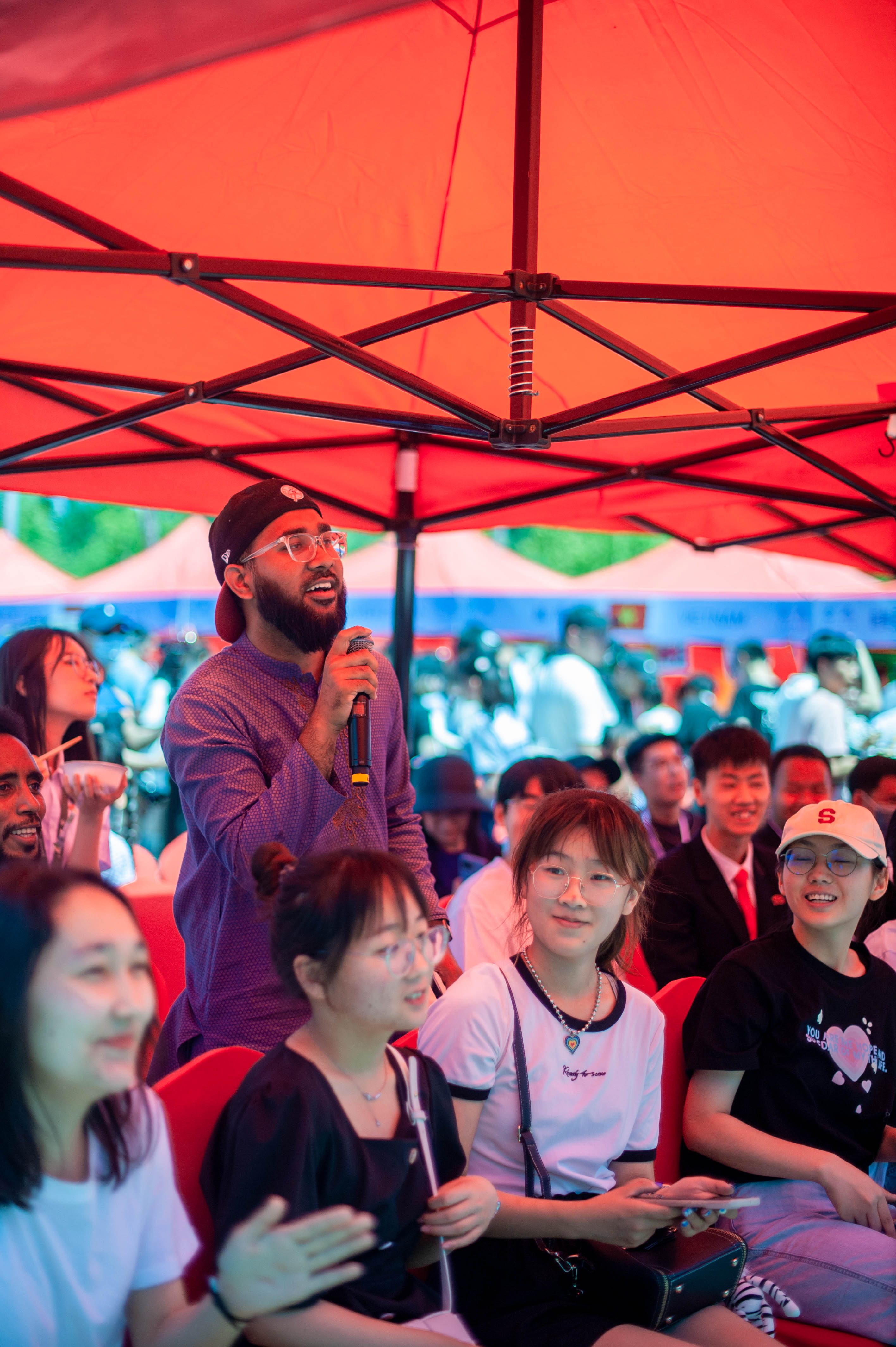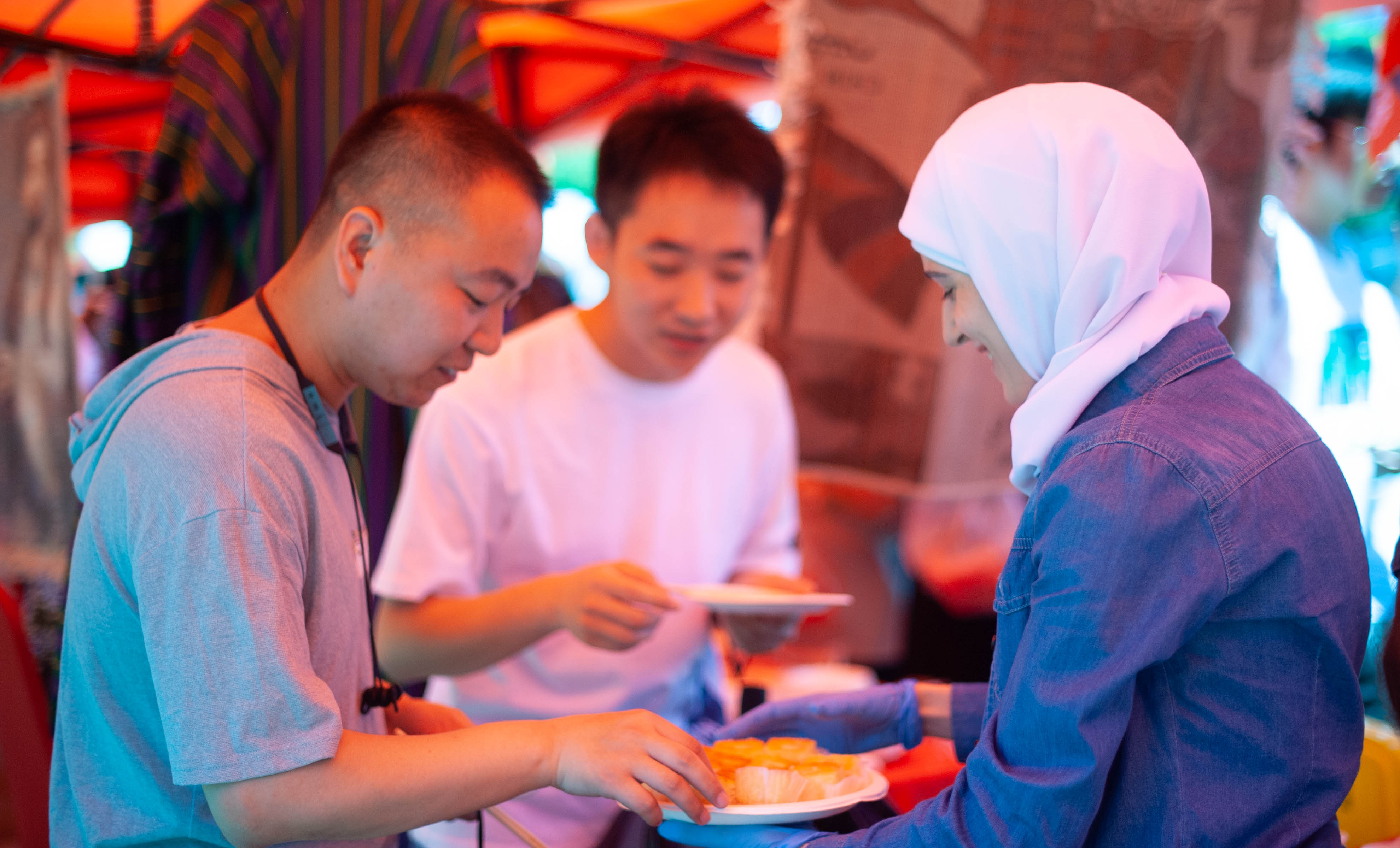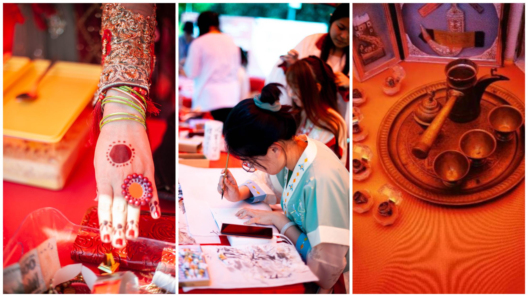 “In order to let everyone taste the authentic Vietnamese food, my classmates and I startedtopreparein themorning. I am really happy to see that everyone likes Vietnamese food so much.”AninternationalstudentfromVietnam saidtous. The international students shared their country's unique food and culturewithus, such as authentic spicy cabbage, Vietnamese spring rolls, and Russian fried dumplingsetc.Althoughtheweatherwashot, Chinese students at the scenewerestillenjoyingtheactivityandthelocalcustoms,appreciatingtraditionalhandicraftsandtastingdelicaciesofdifferentcountriesin front of the20exhibitionbooths. Theyalso communicated with international students from time to time.