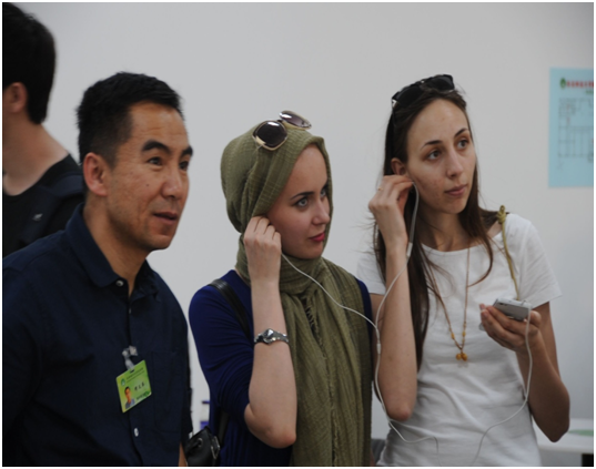 留学生在修老师的指导下体验信息共享空间