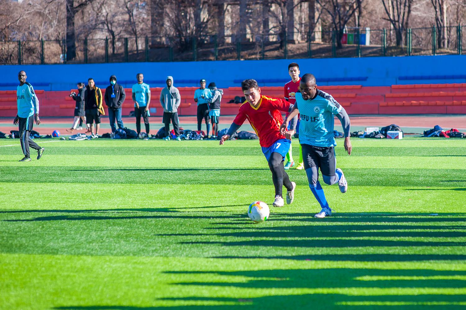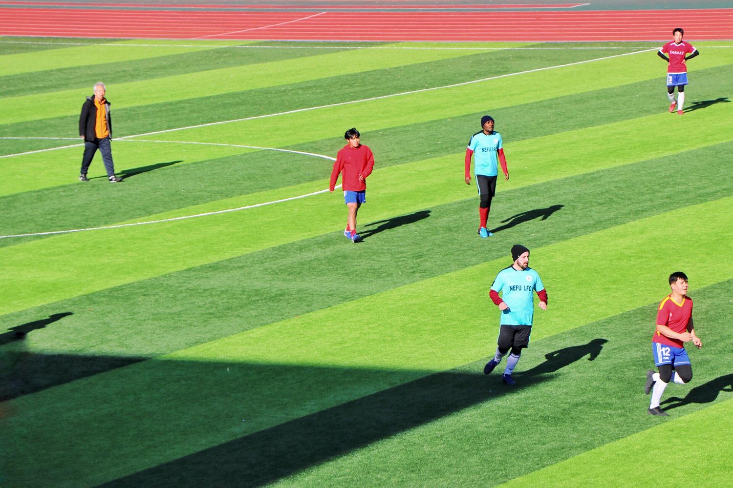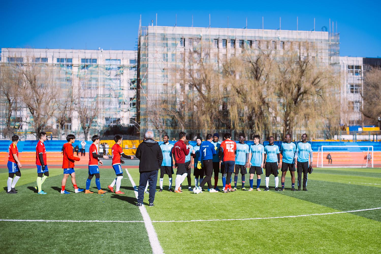“很荣幸能够和学校最棒的校足球队同学同场踢球,好长时间没有跑这么长的距离了,身体上累,但心里高兴,如果下雪,我们还想在雪地上再踢一场。”刚果(金)籍博士研究生迪迪叶向坐在旁边的校队同学发出了比赛邀请。